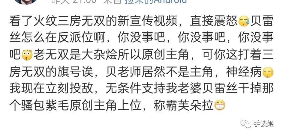 “风花雪月无双的新预告片,本应和我加深羁绊的学生们用我从未见过的姿态和我不认识的男人亲密接触,真的很有NTR感”