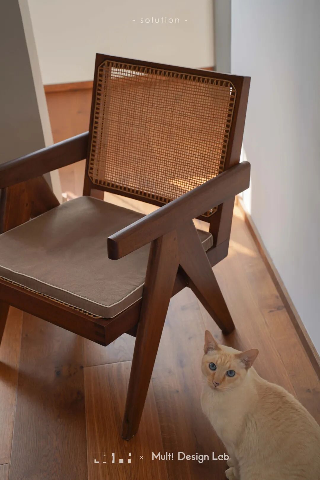 不同于一般的沙发设计,以L形的地台为底座,上面是恰到好处的定制沙发垫,自然而然地组成了一个松弛有度、安全感十足的休憩空间。