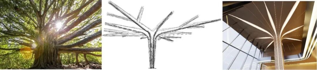 项目设计承百年榕树之形,将百年古榕元素融入建筑理念中,保留原有福地风貌,以榕树繁盛的生命力注入项目设计,承袭与城市共生长,与盛世共繁荣的理念。