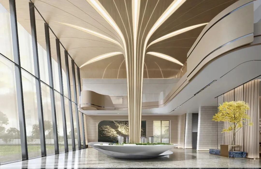 项目设计承百年榕树之形,将百年古榕元素融入建筑理念中,保留原有福地风貌,以榕树繁盛的生命力注入项目设计,承袭与城市共生长,与盛世共繁荣的理念。