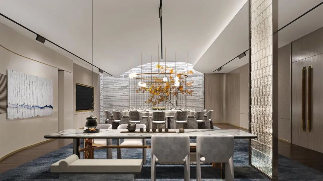会所涵盖大堂、宴会厅、健身空间室内泳池等,通过巧妙的设计,实现了内部空间艺术感与独特性的兼备。在保持整体色系统一的同时,又通过材质的差异带来微妙的变化。隐藏的暗雕花纹及微妙的泛光,为整个空间营造了轻松的氛围。谈笑有鸿儒,往来无白丁。这里,将汇聚邻里塔尖人群,圈层的尊崇与高雅,聚集一群城市精英,相似的眼界,相通的世界观,相近的品味,在此携手共创价值。