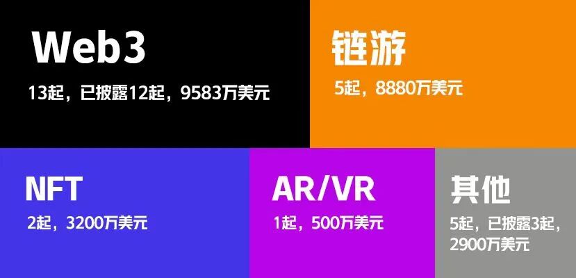 我们将元宇宙投融资事件主要分为了Web3.0、AR/VR、其他基础设施三个赛道,分别为20起、1起和5起。
