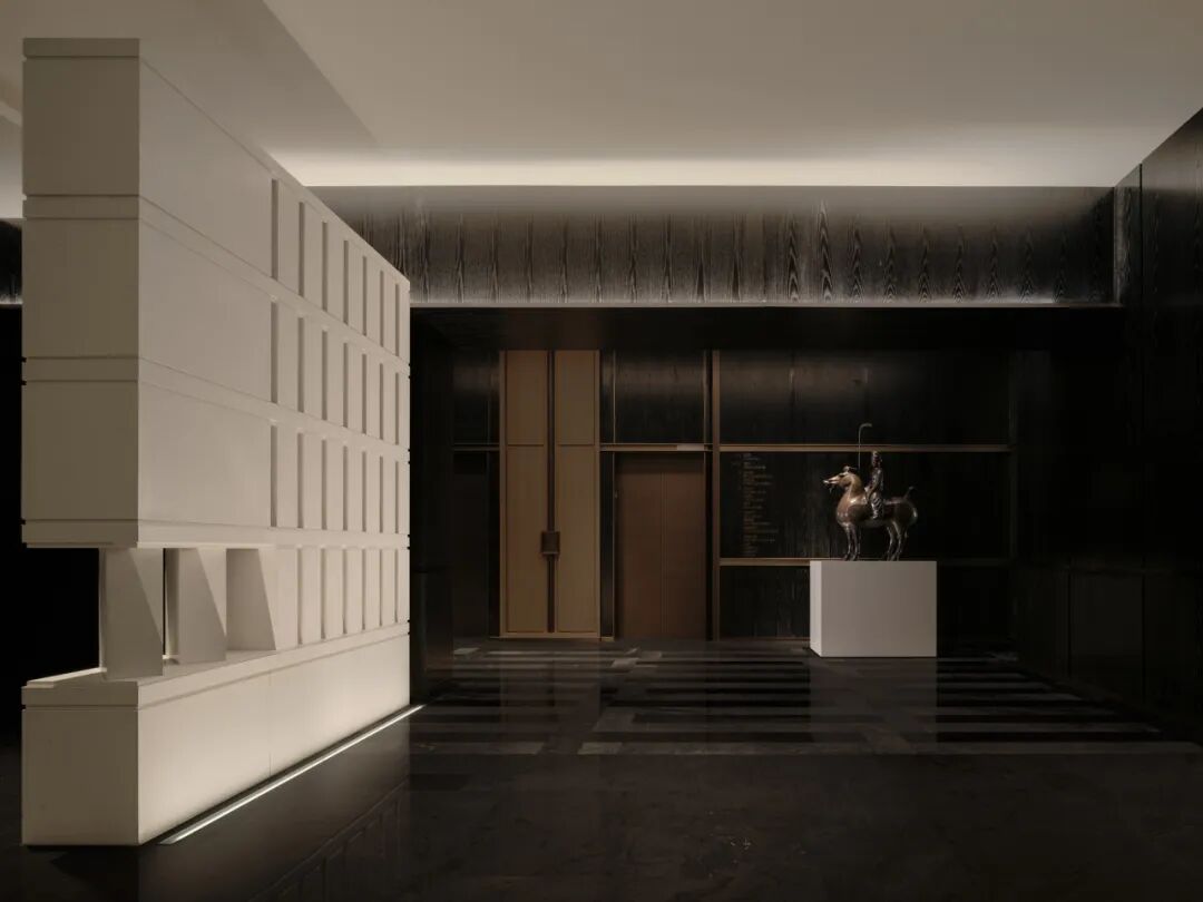 入口巧借東方園林佈局手法,將曲徑回欄等以現代手法演繹,由深轉“境”,呈現一種層層遞進的秩序感,讓身處其內的人在遊歷的過程中與環境融為一體,感受建築的呼吸和氣場。