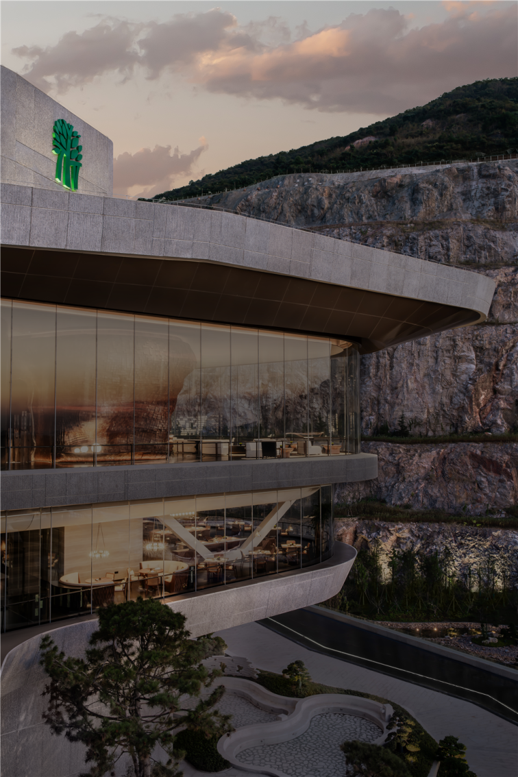 面对荒废已久的采石矿场,生态修复成为设计的首要任务。CCD尊重生态系统的可持续性概念,将汤山本地废弃石灰岩矿山的光、石、林、雨等元素解构重塑,构造出一处富有艺术整体性情景的“矿谷秘境”。