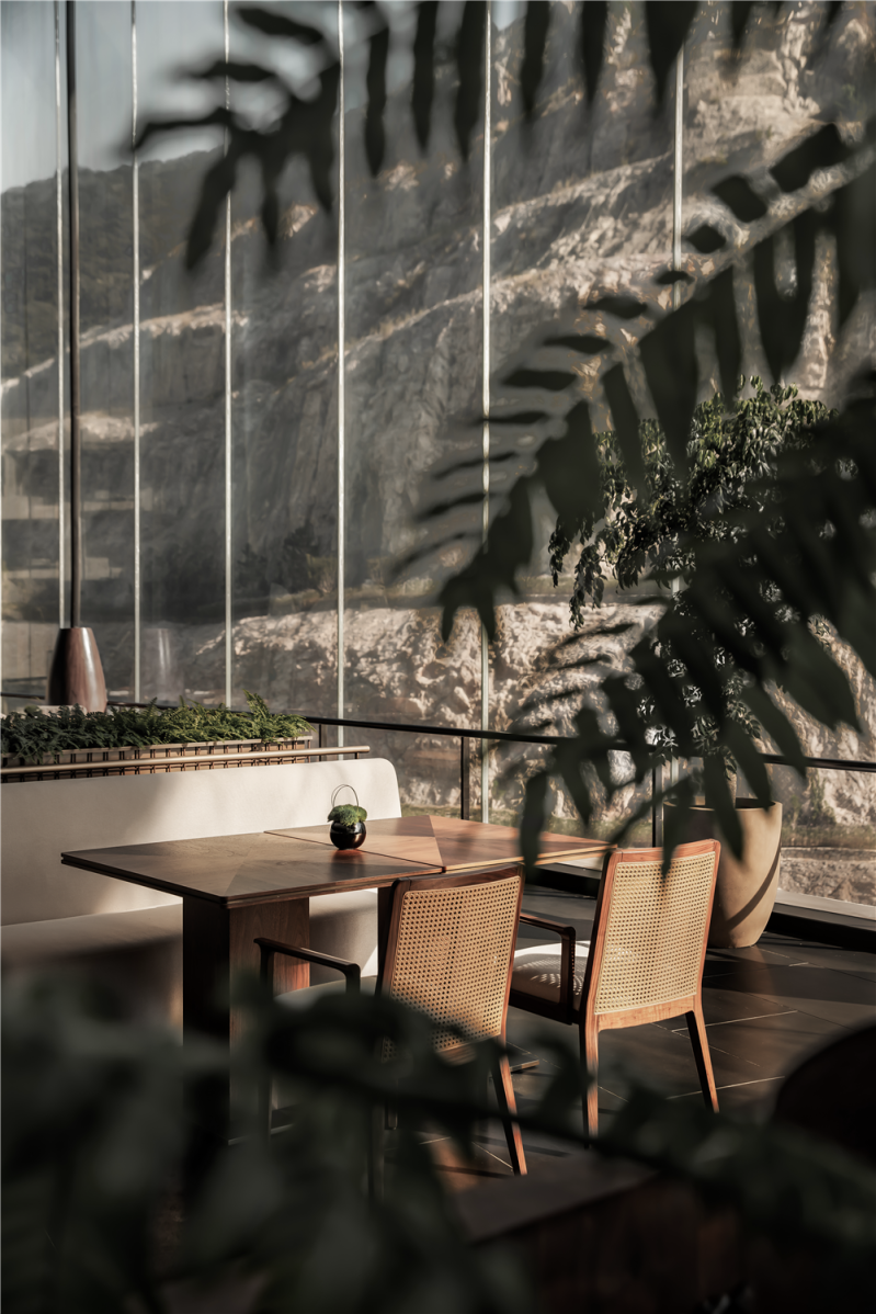 全日餐以光影的流动为行为动线,大面积的落地窗为空间引入充裕的自然光,构筑一个明暗成趣的现代诗意空间。