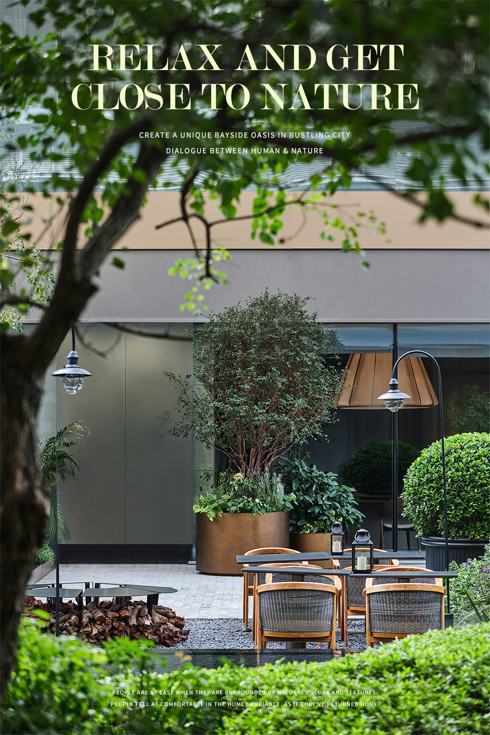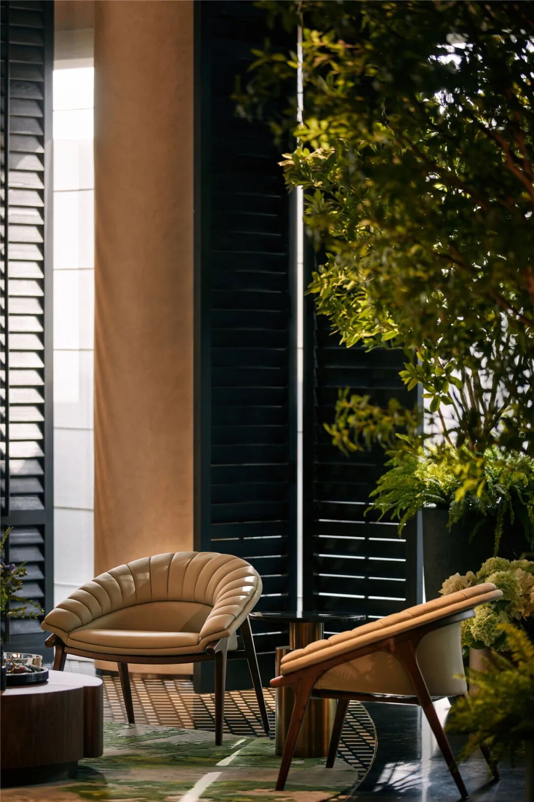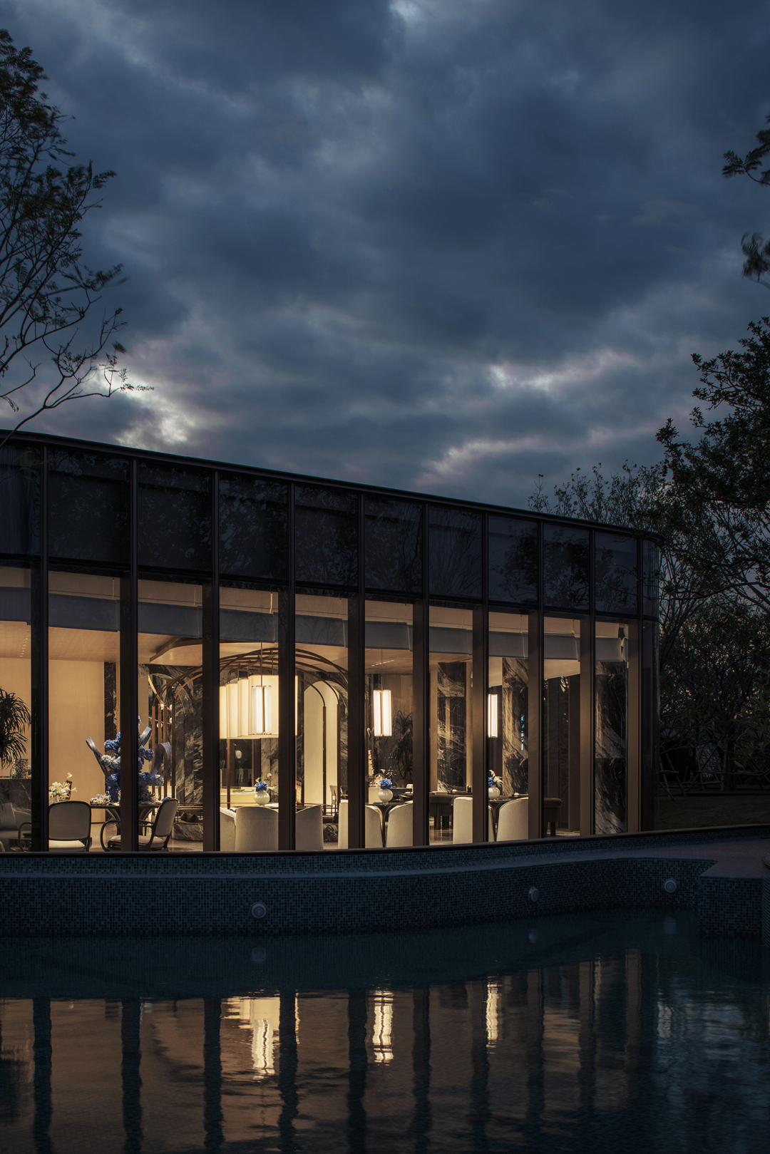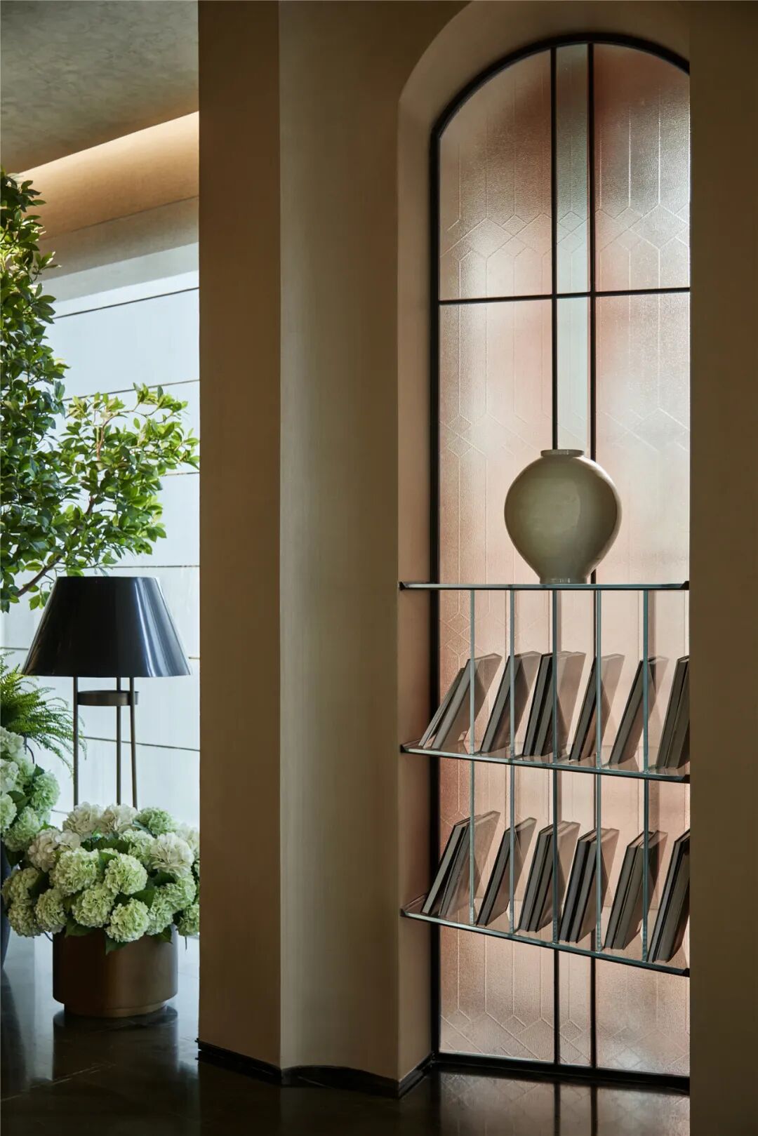 私宴餐廳構建出一隅藝術與自然互動的角落,落地窗無聲地接納自然光影,而極具藝術感的傢俱、飾品點綴著空間的內核。