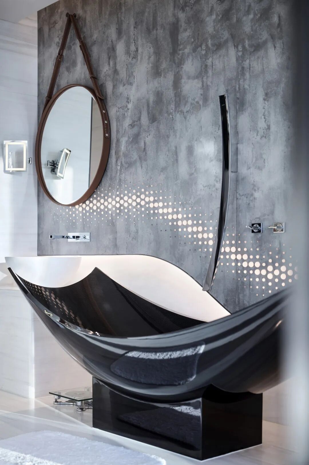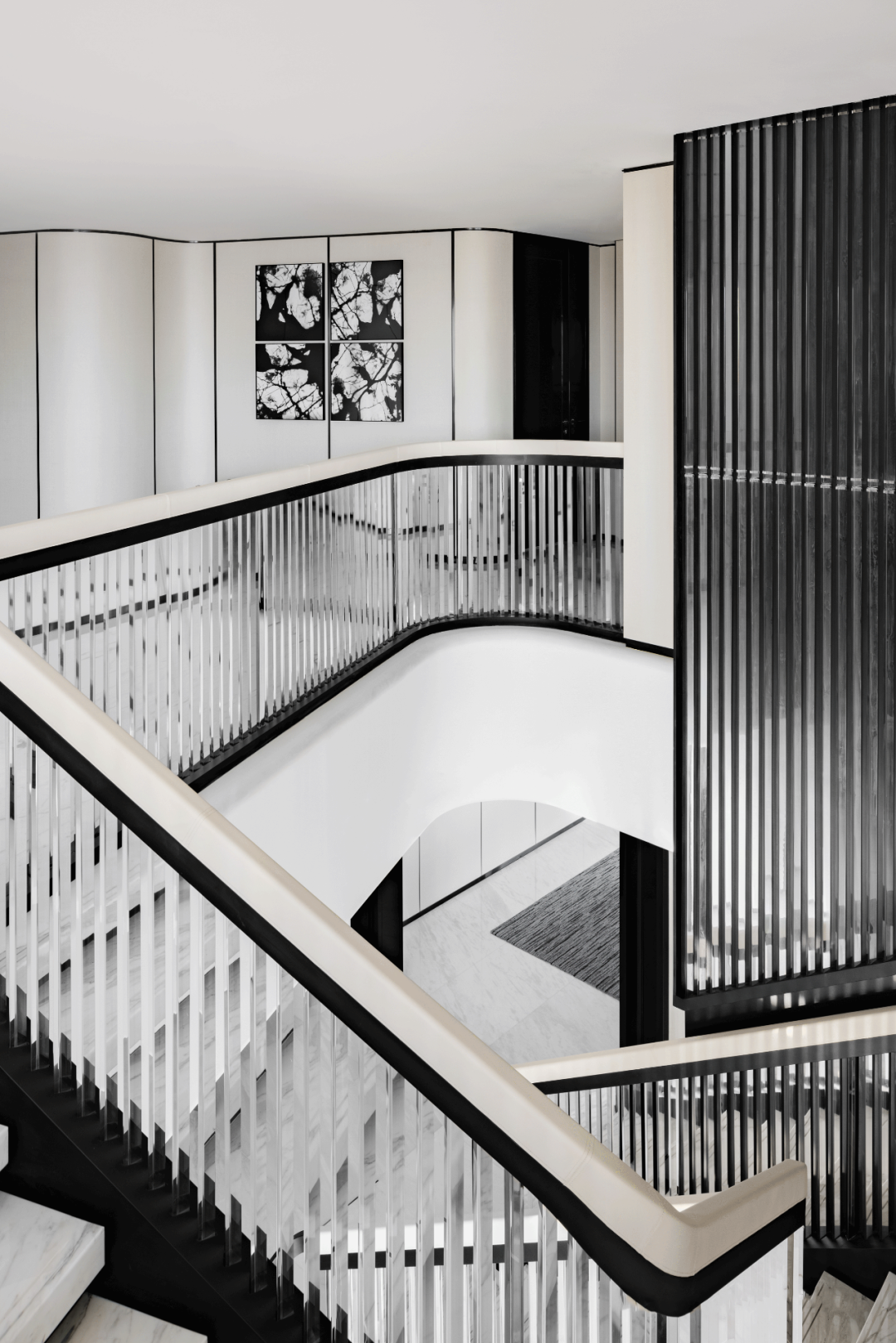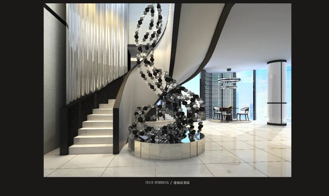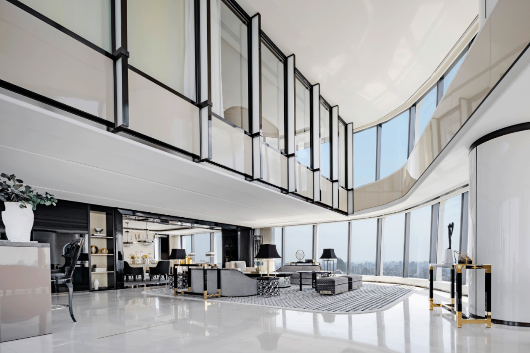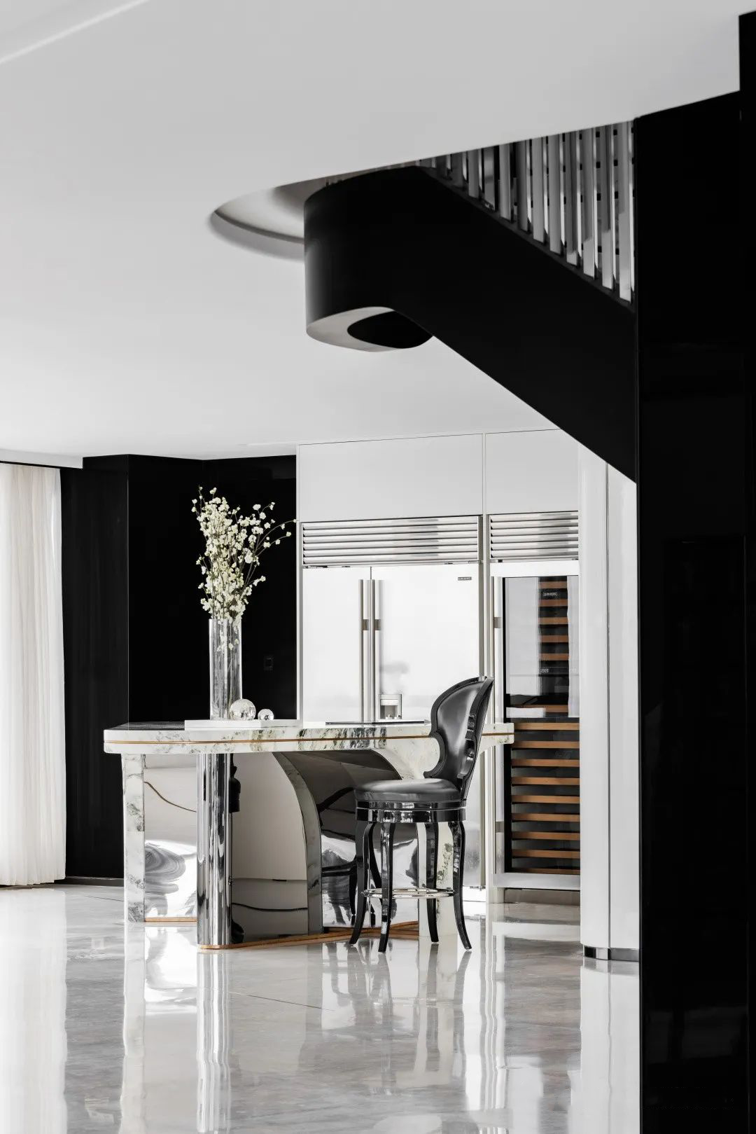 整個空間以經典的黑白配色為基調,柔和的弧線中和了黑色的果敢,不同材質、不同光線的反射帶動空間的豐富性與趣味性,襯托出時尚,優雅,浪漫的生活品質。