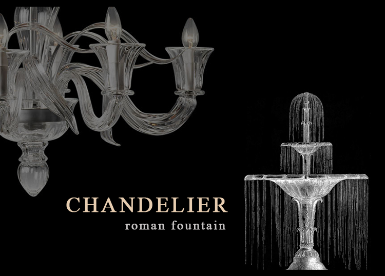以廣場中心噴泉為靈感的水晶燈優雅精致,水晶相互映射,反射出朦朧的霧靄。穿過這片薄霧,在隱秘的水波中,被逗樂成一束束明亮的光。黑暗中閃耀的珍珠,蜿蜒而去,無邊無際。