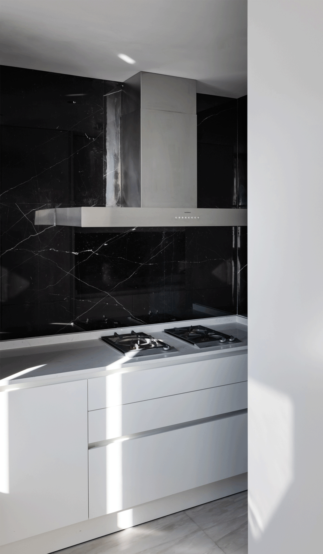 黑色與白色進行美麗的幻化,宛如黑白琴鍵。黑色勾勒出簡潔的邊框,透明玻璃和白色板塊,化繁為簡,形成一種彩色過濾,最終回歸本質。