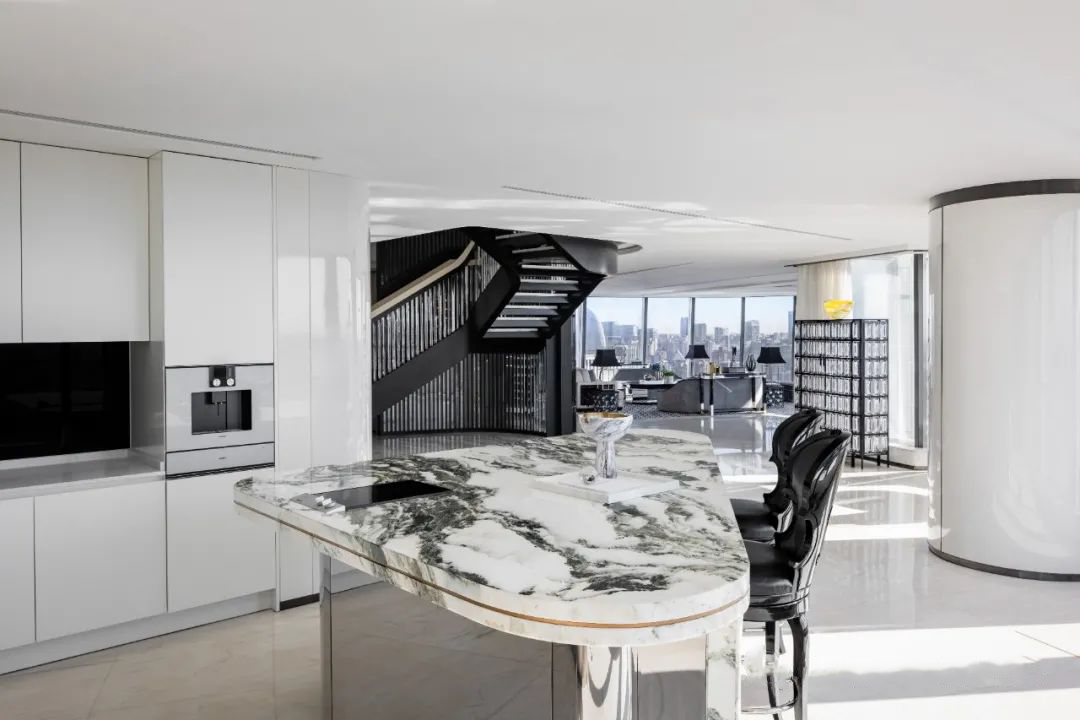 白色的線條、塊面、家具,無疑是空間裏的最佳背景色。無聲勝有聲的留白,不浮誇也不搶鏡頭,與「不說話的背景」不謀而合,將品味完美融入到細節之中。