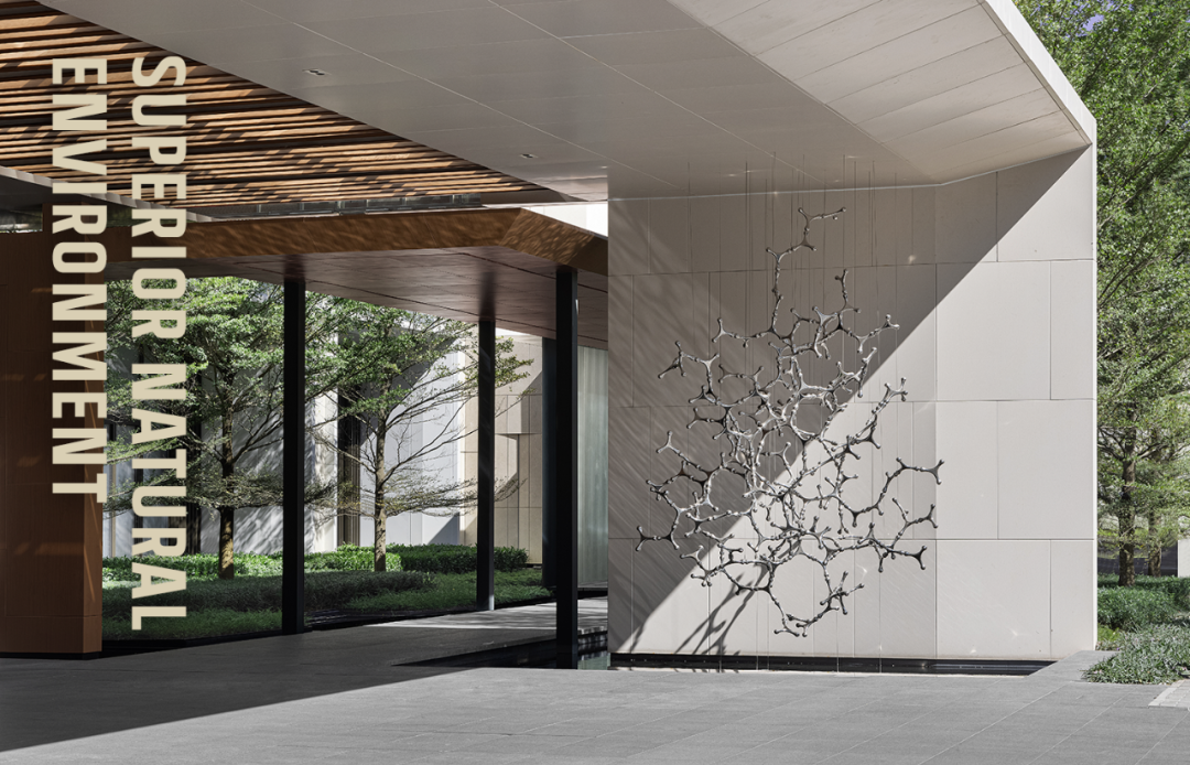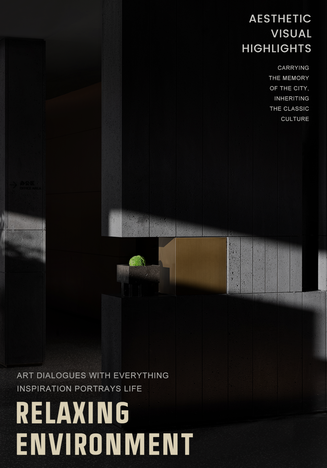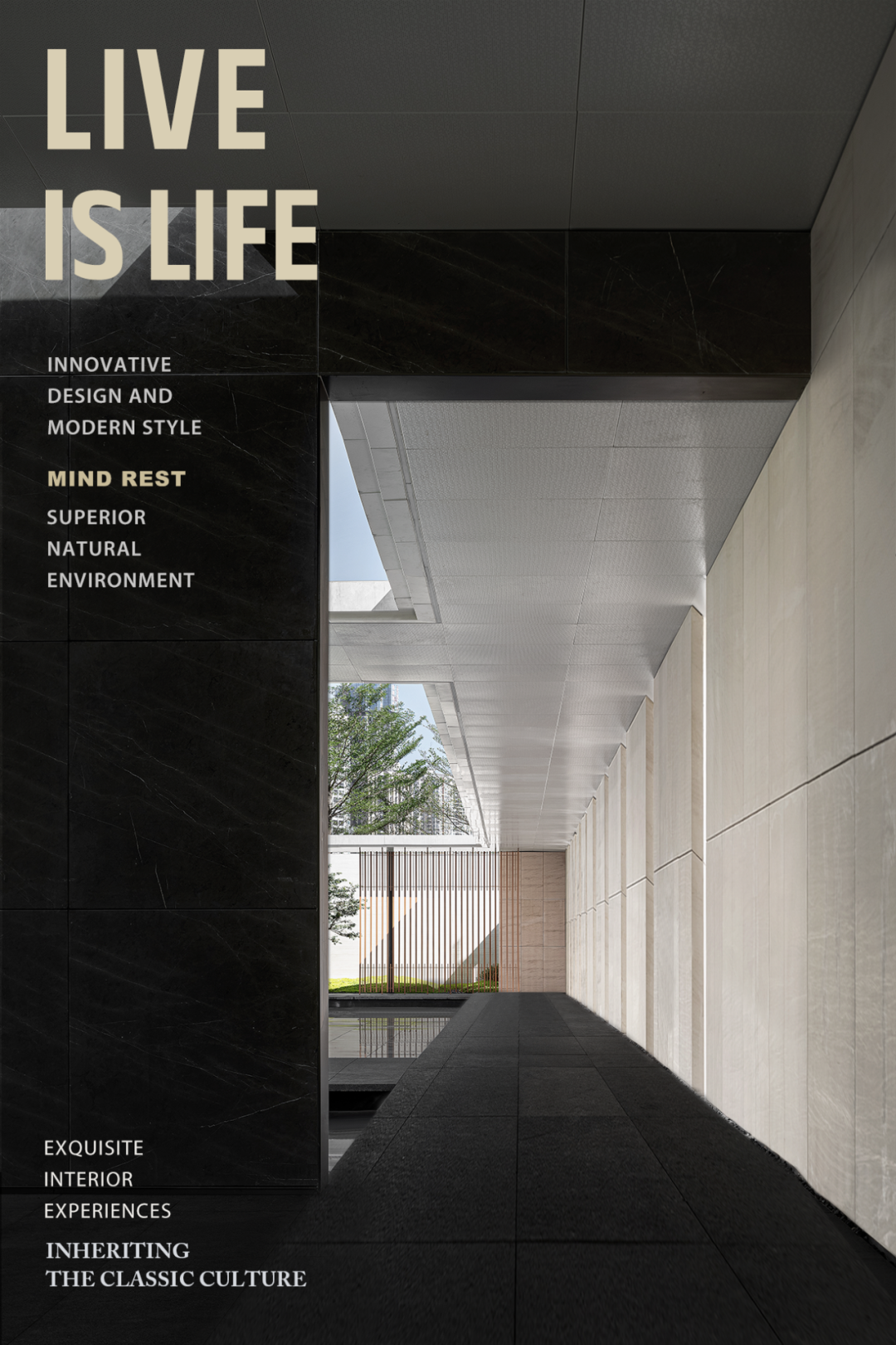 延伸建筑体块穿插的手法,分隔形成不同主题的分区,把建筑、景观、室内相互渗透相互融入。