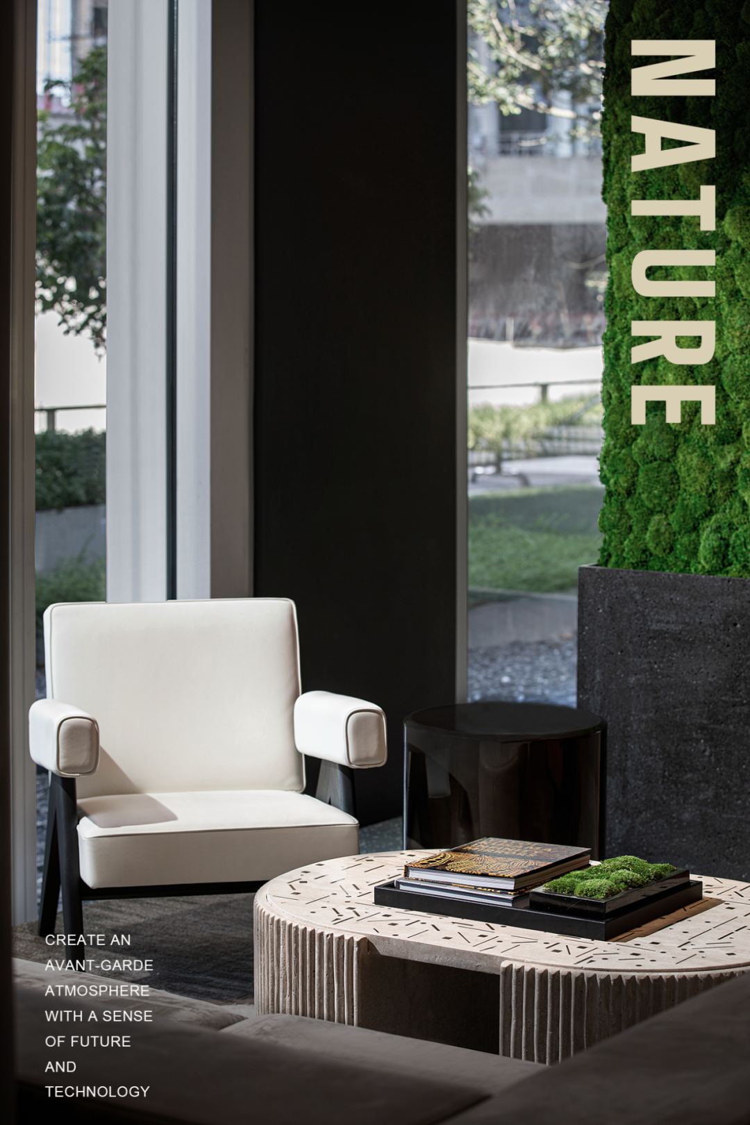 墙上的青苔触感独特别致,让空间渗透出温和的生命力和治愈力。