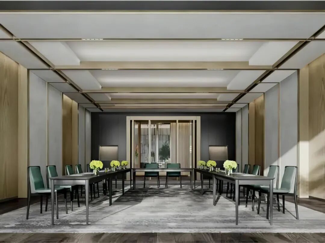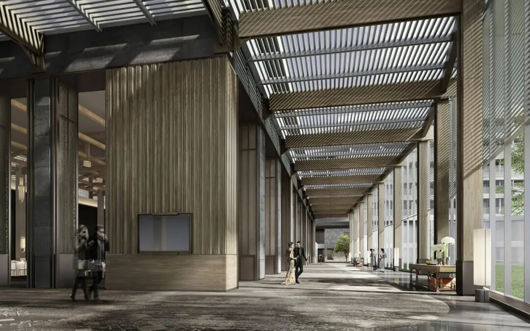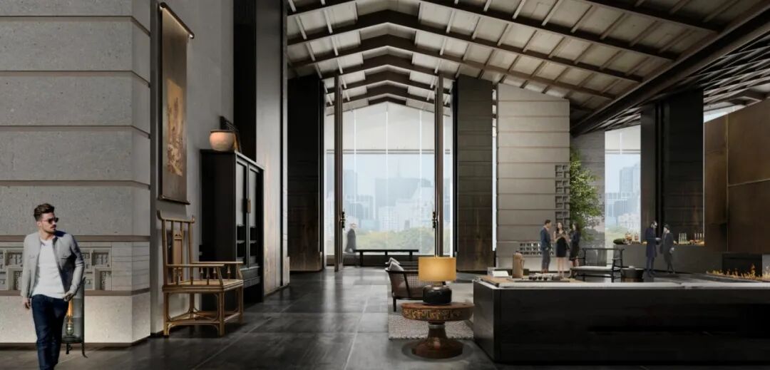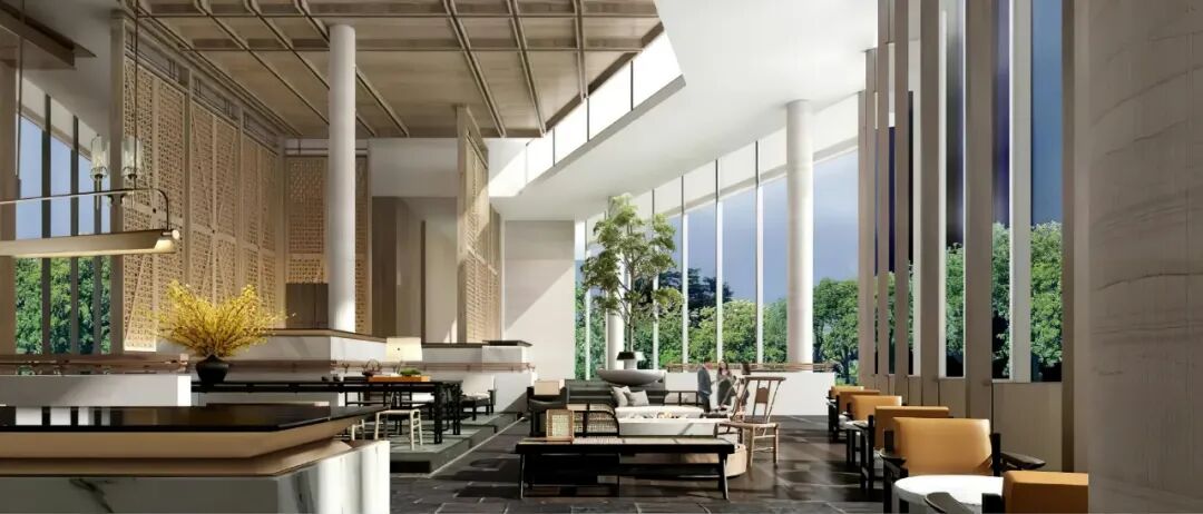 成都東安湖木棉花酒店室內提取四川地貌,建築語言,當地文化,龍泉驛等為設計元素,將古代驛站的生活方式融入空間,令賓客穿越時空,感受當年一派繁華盛景。