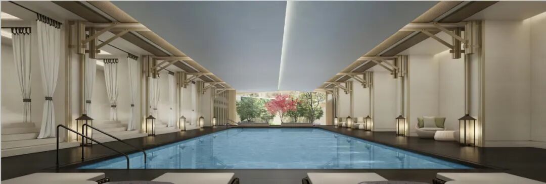 泳池建築意向的斜坡屋頂,指引視覺向外推遠。