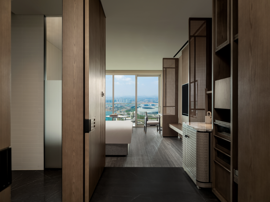 視野開放的露臺與大運會賽事場館對望,情趣交感在此共鳴。