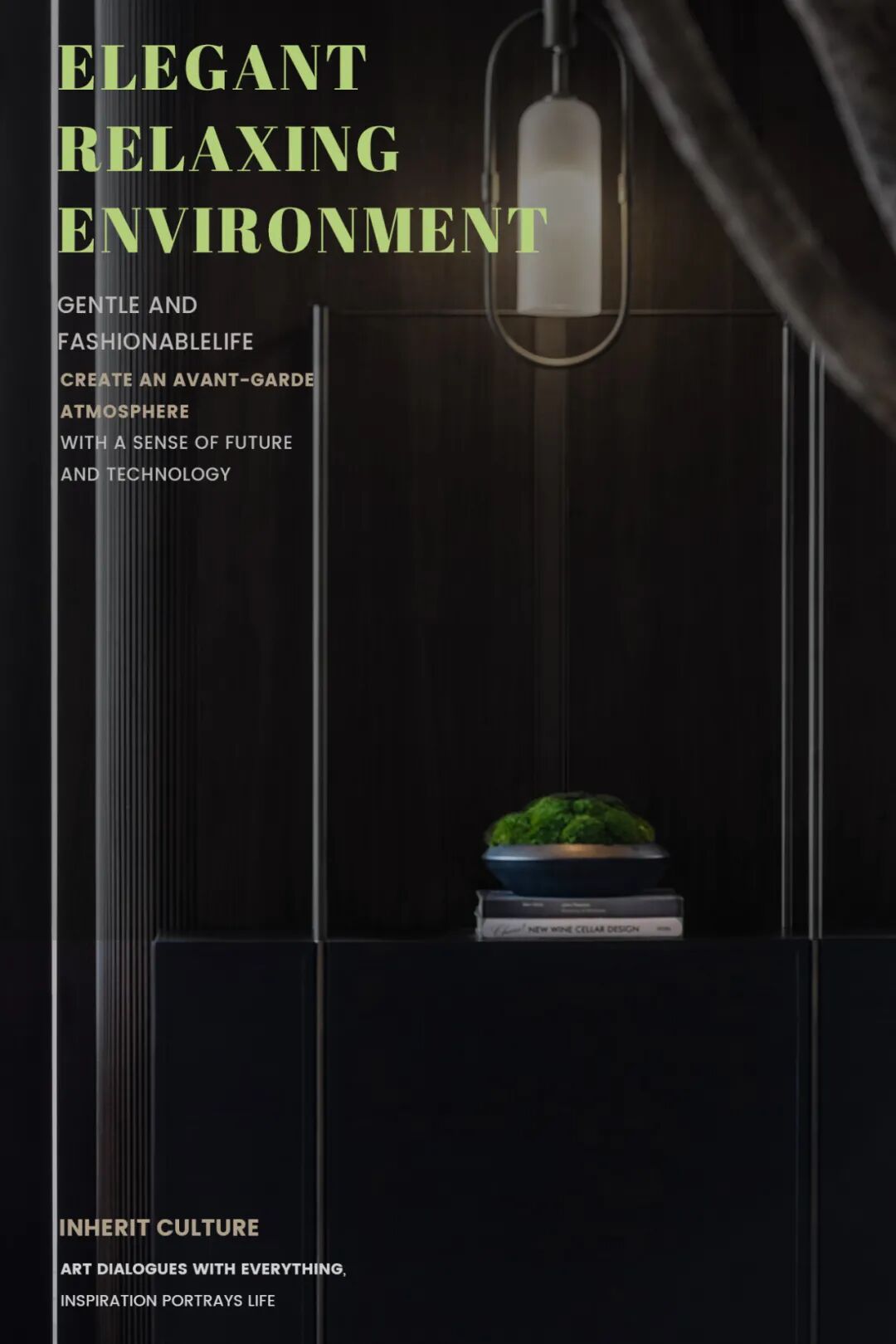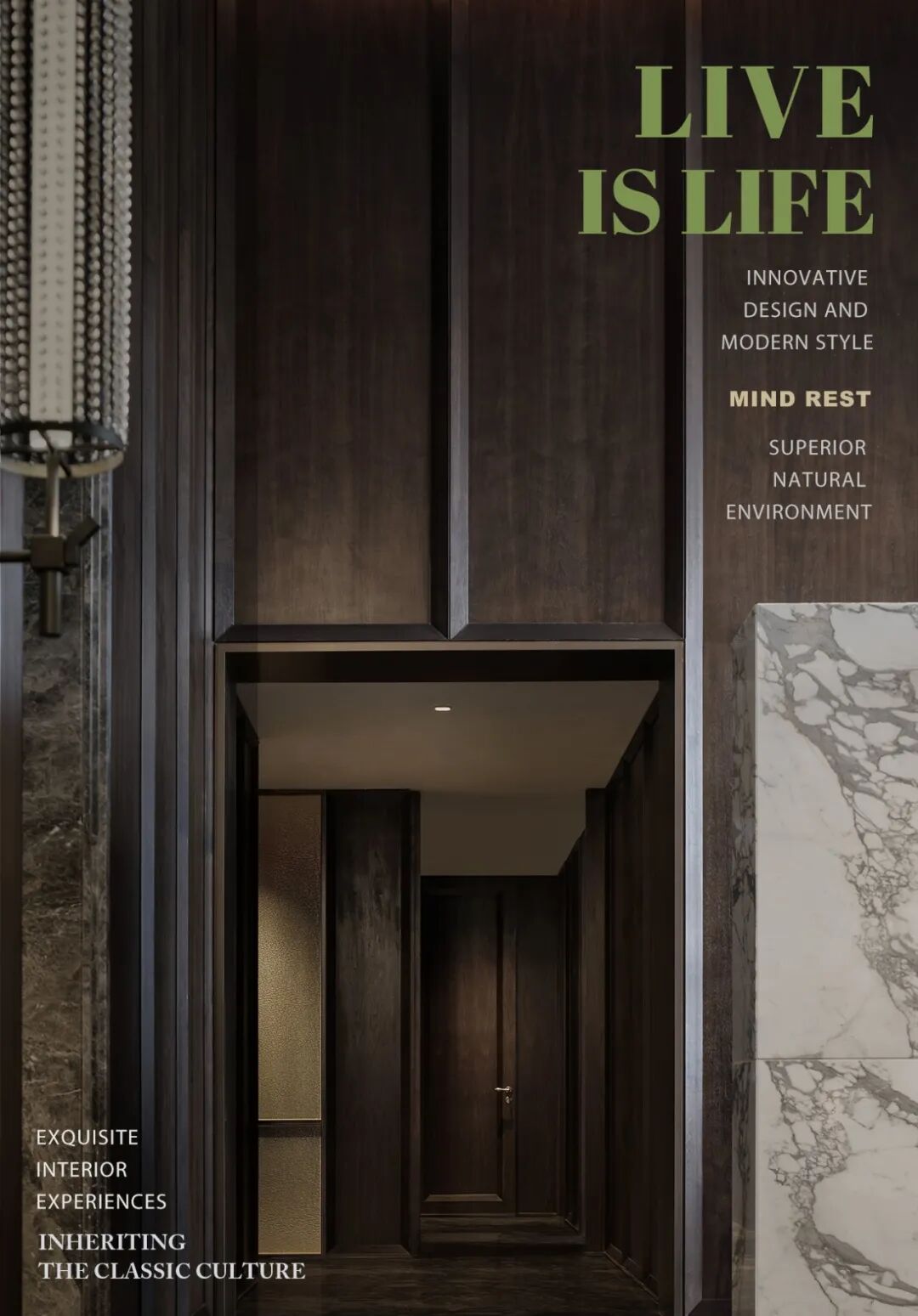 鲜活的绿植将整个空间温柔地点亮,深棕色的高耸的门扉搭配精致吊灯,灵动自由,品质的高贵感凸显空间的优雅大气。