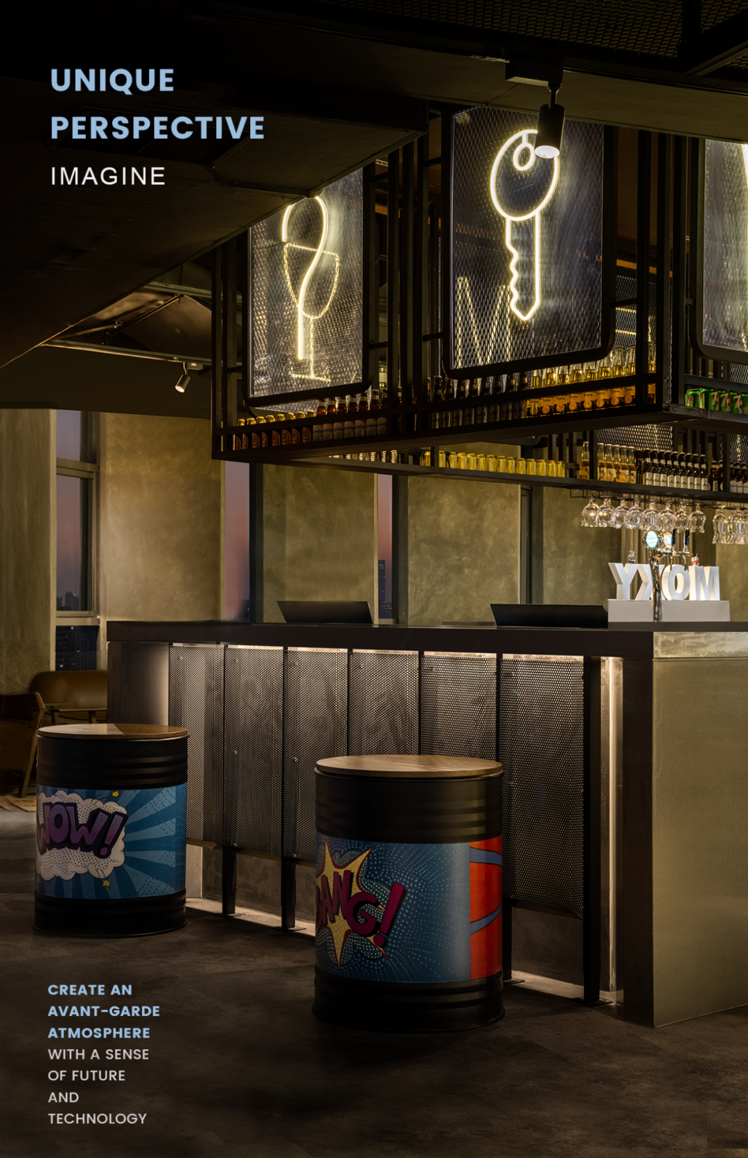 设计通过特色的街头文化和时尚结合,借鉴上海城市的多样性和鲜明大胆的对比,构成活力的酒店空间。