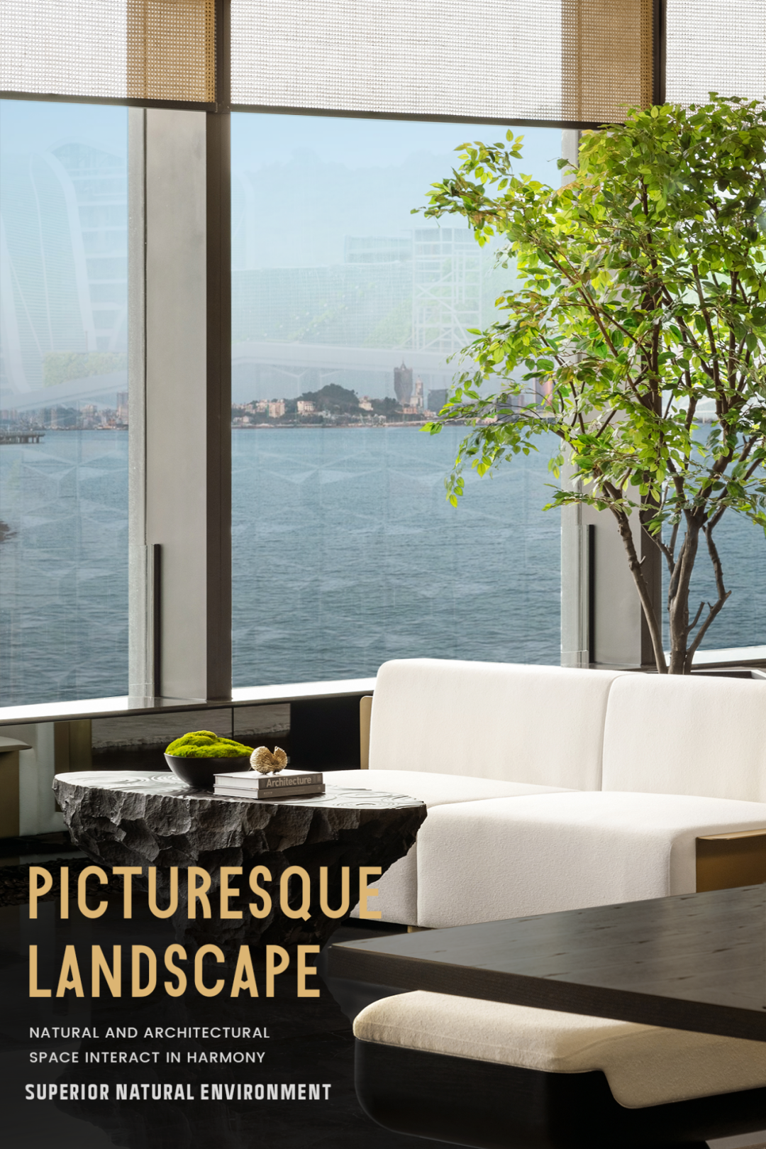 设计将横琴城市独特纹理进行转化,契合当下鲜活的都市灵魂,寻求都市主义与返璞归真的平衡,回归自然意识,呈现极简、安静、纯粹、自然的生活美学,开启一段空间传奇序章。