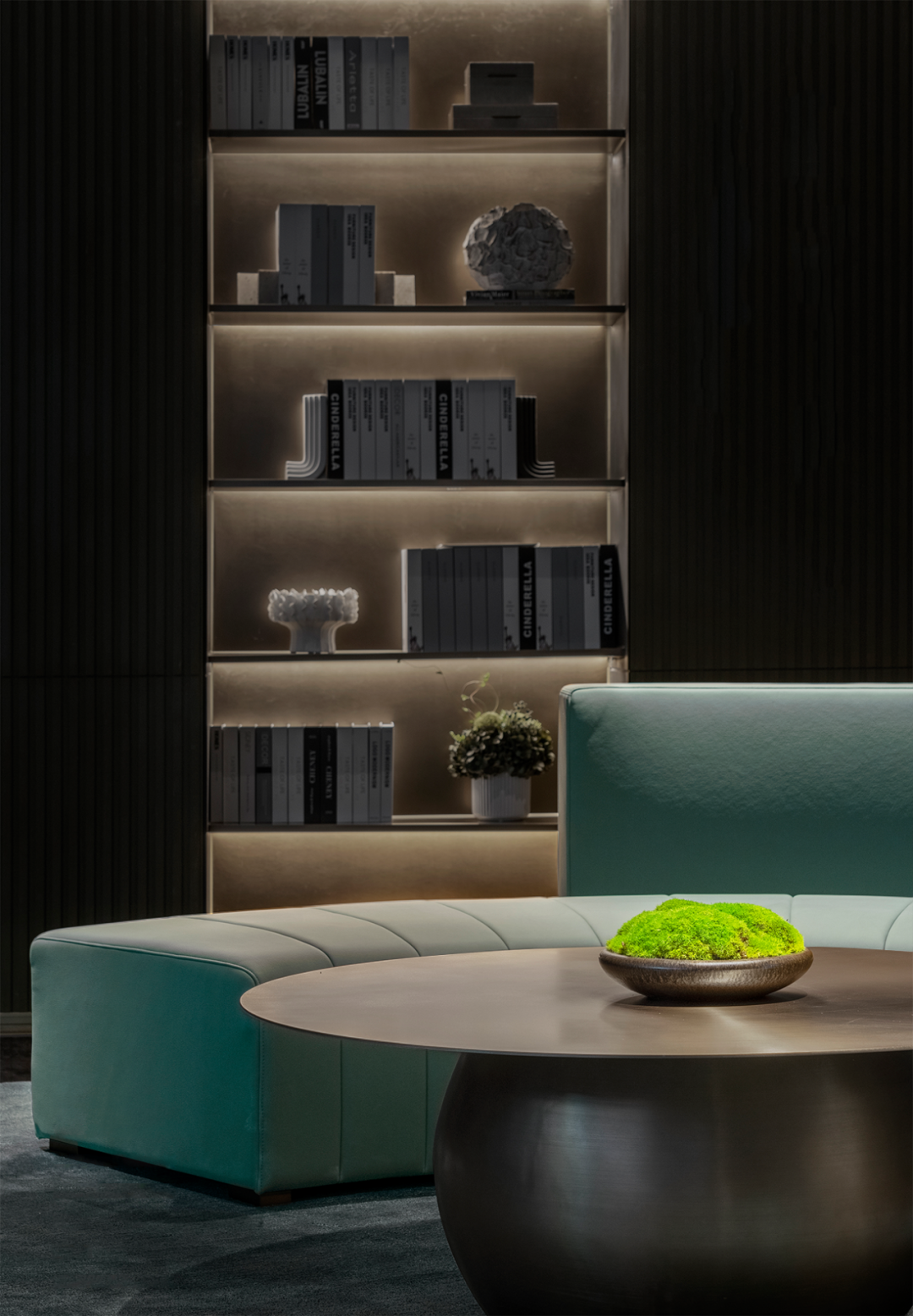 绿色空间中唯一的点缀色,衔接聚、思、品多方位的情绪,聚大气之家。
