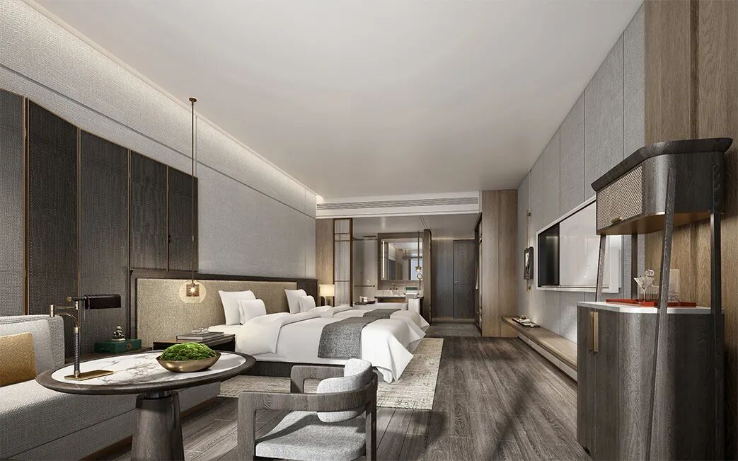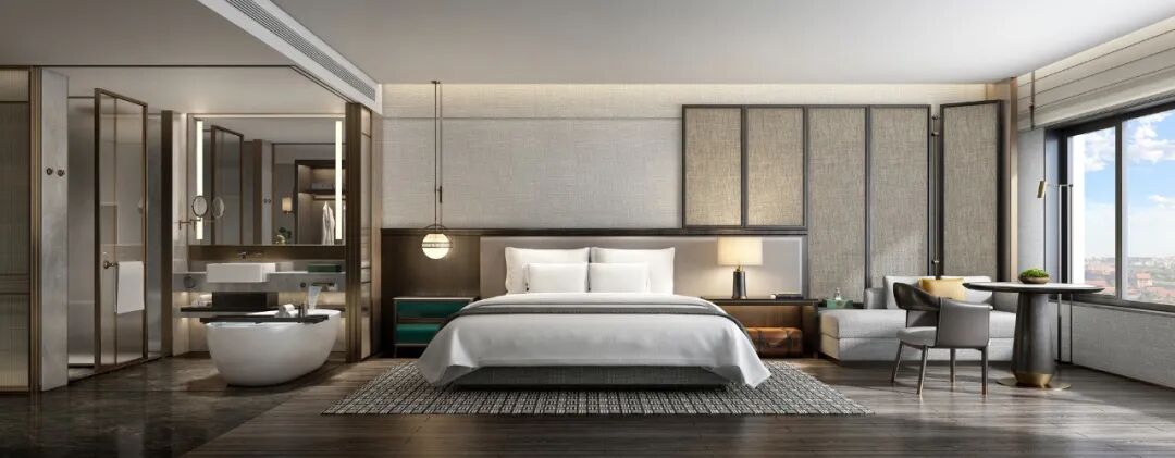 酒店拥有390余间精典存粹的情怀雅居,人性化的居停空间辅以豪华设施,是一夜酣眠的栖身之所,由CCD香港郑中设计事务所操刀设计,用现代化的设计语言,描绘城市至善嘉邸。