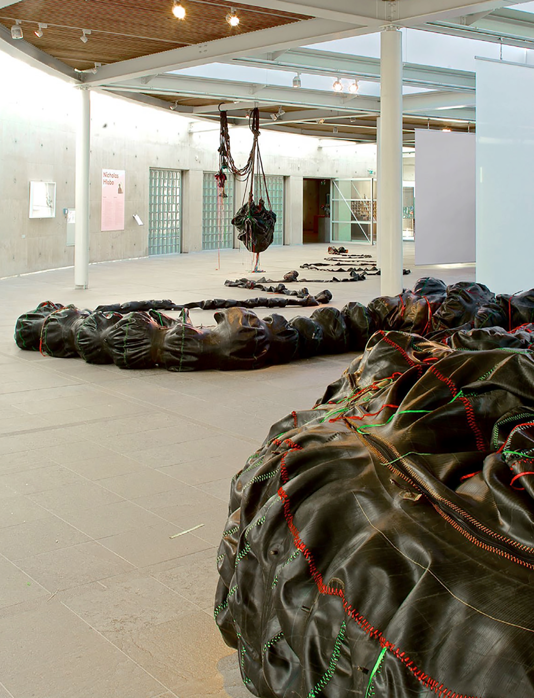 尼可拉斯·贺罗伯 (Nicholas Hlobo) 是工作和生活在约翰内斯堡的南非艺术家,他以使用缝纫的手段制作混合雕塑、绘画作品著称。通过将拥有多重文化意味的物品——如橡胶、皮革、丝带、木材、铜等缝合在一起,艺术家努力抚平各种阶层、性别、身份、族裔之间等基于传统二元论形成的裂痕,并向我们展现了南非“后种族隔离时代”中多元的生命存在形式。他的作品被众多国际重要机构及私人收藏,包括美国纽约大都会艺术博物馆、英国伦敦泰特现代艺术馆、法国巴黎蓬皮杜中心、法国巴黎路易威登基金会、美国密歇根州底特律艺术学院、美国佐治亚州萨凡纳艺术与设计学院 (SCAD) 艺术博物馆等;贺罗伯还曾在英国泰特美术馆 (2008) 、荷兰贝尔登博物馆 (2016) 及以色列特拉维夫CCA等艺术机构举办个展。我们试图通过以下文字从艺术家丰富的创作版图中摘取出部分片段,“缝合”成若干贺罗伯自我画像中的一幅。