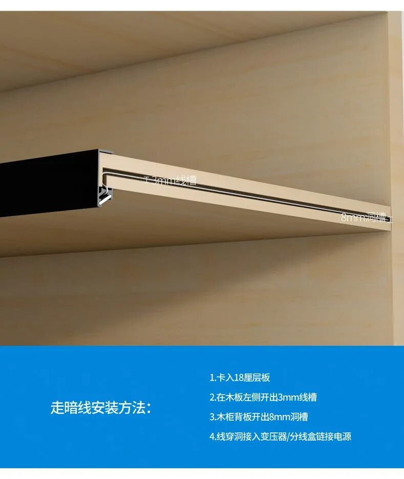 3、常见的层板灯带应用有:书柜、衣柜、电视柜、镜柜、酒柜、展示柜、厨房吊柜......