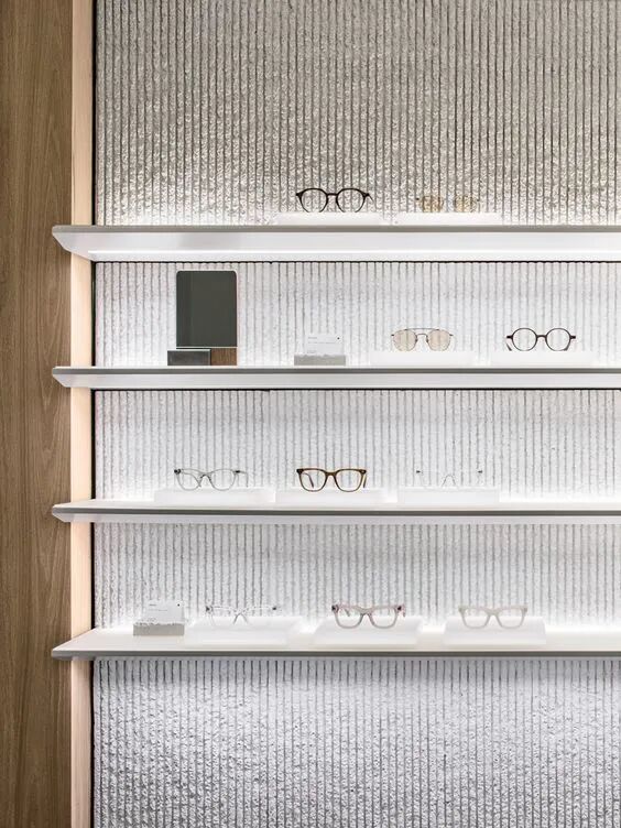 非产品化定制的金属层板,也是可以达到一定的效果,同样利用视觉上的差异,在视觉点以上的层板将灯带或者造型折边安装在上部,视觉点以下的金属层板将灯带安装在层板以下,视觉效果同样显著。