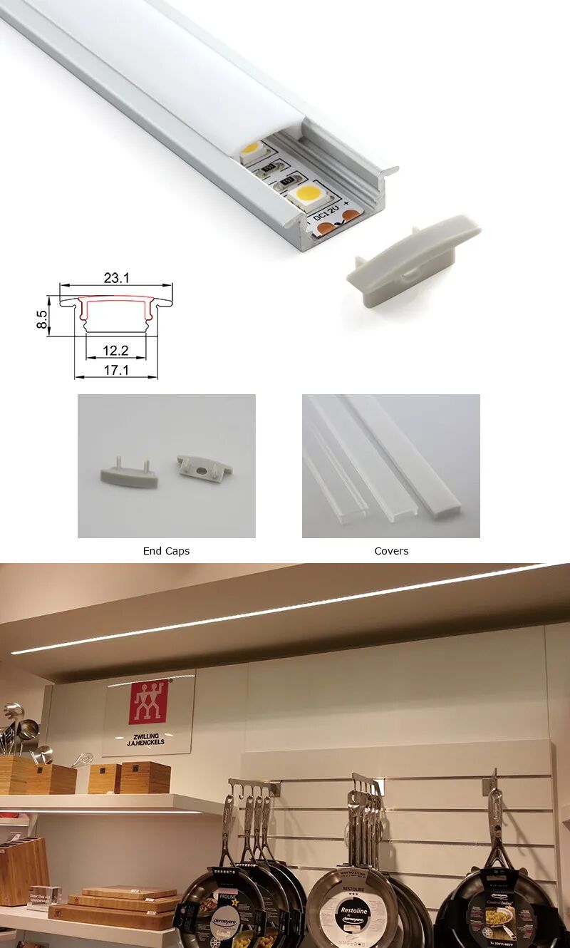 铝材灯带上下打光,嵌入式斜出光,卡玻璃灯带,出光效果均匀,多种型号规格安装方便。