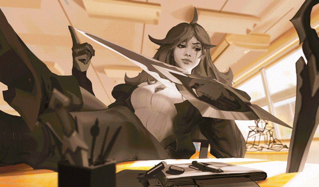 Atey Ghailan为《英雄联盟》和《无畏契约(VALORANT)》创作皮肤和角色设计,跟他个人作品的风格差别很大,但对于Atey Ghailan来说不同风格也是对自己的锻炼,突破失败可以获得成长,所以他认为艺术家必须要走出舒适区才能得到提升。