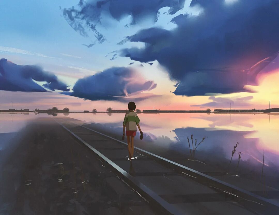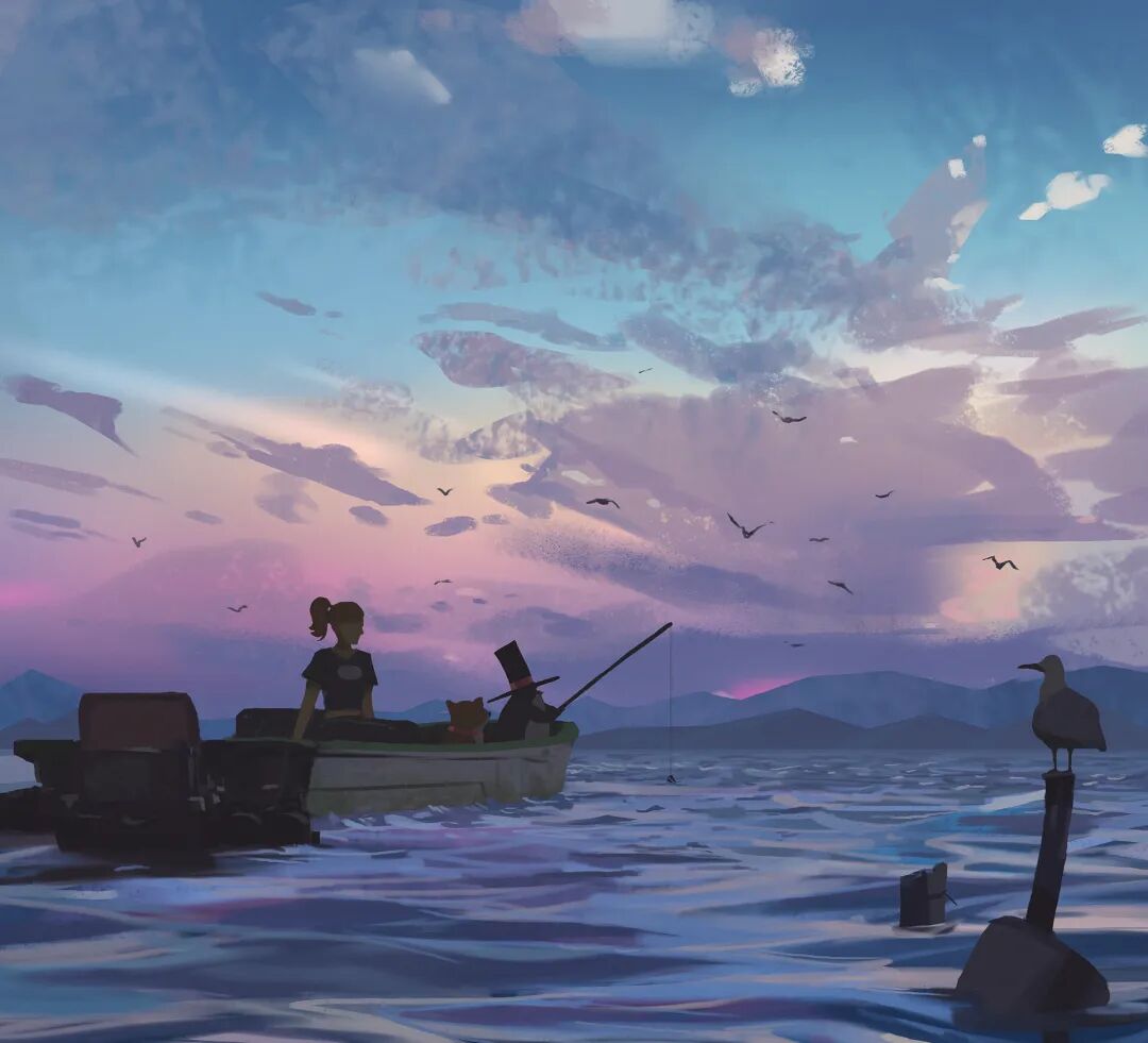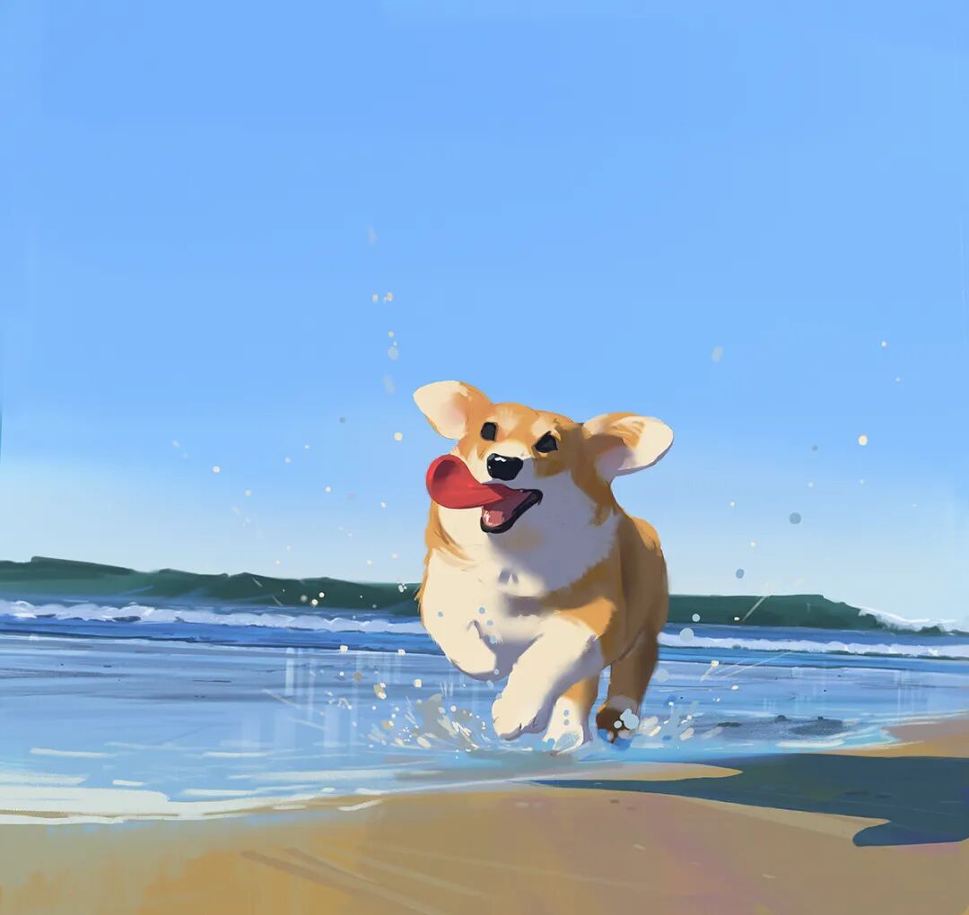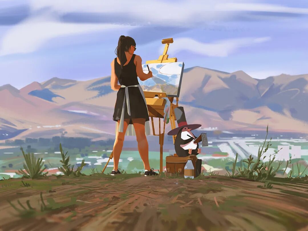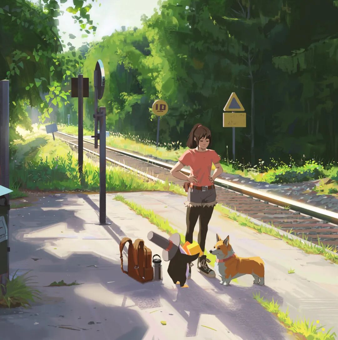 Atey Ghailan也被人称为高产狂魔,他多年来坚持每日速涂,作品辨识度很高,最常见的就是舒适迷人的自然风光,以及他的少女与柯基企鹅系列,作品笔触自然,色彩和谐光感强烈,整体氛围清新又轻松。