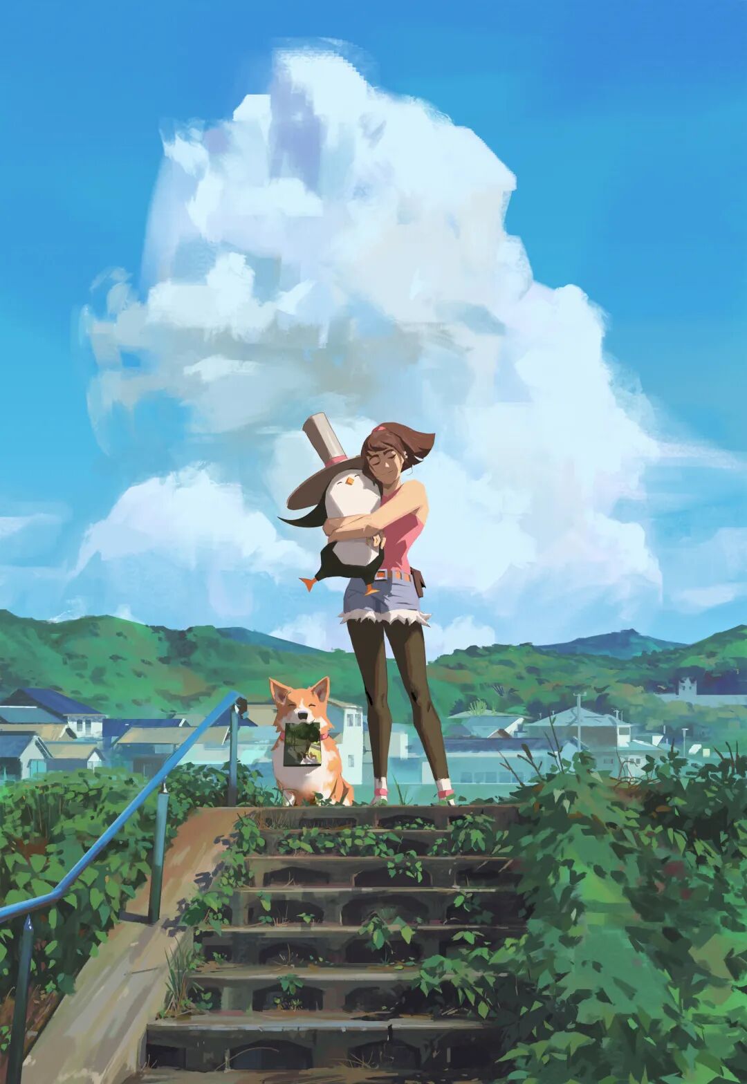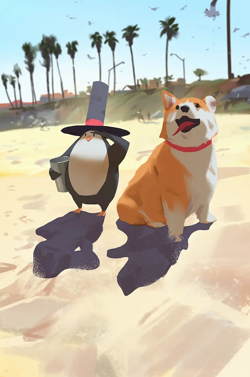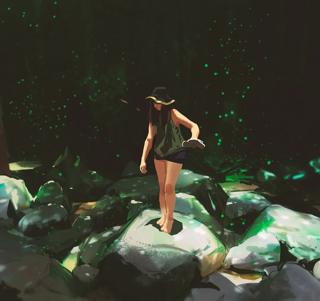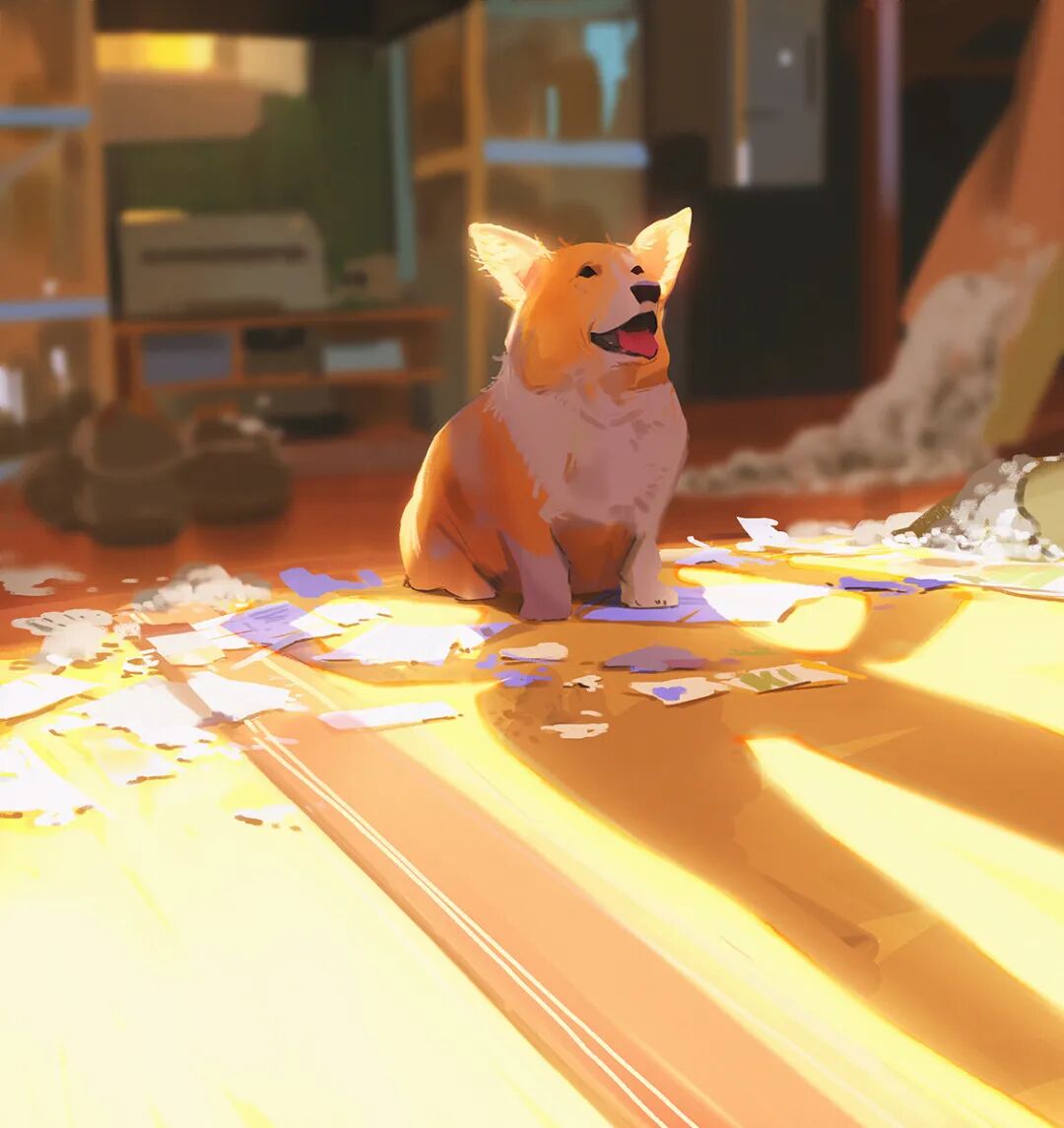 Atey Ghailan也被人称为高产狂魔,他多年来坚持每日速涂,作品辨识度很高,最常见的就是舒适迷人的自然风光,以及他的少女与柯基企鹅系列,作品笔触自然,色彩和谐光感强烈,整体氛围清新又轻松。