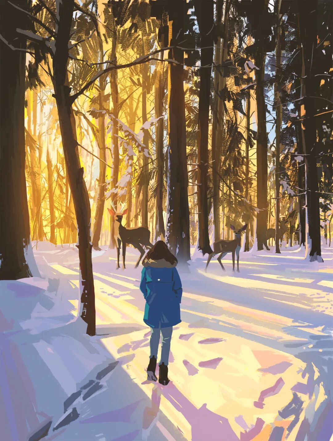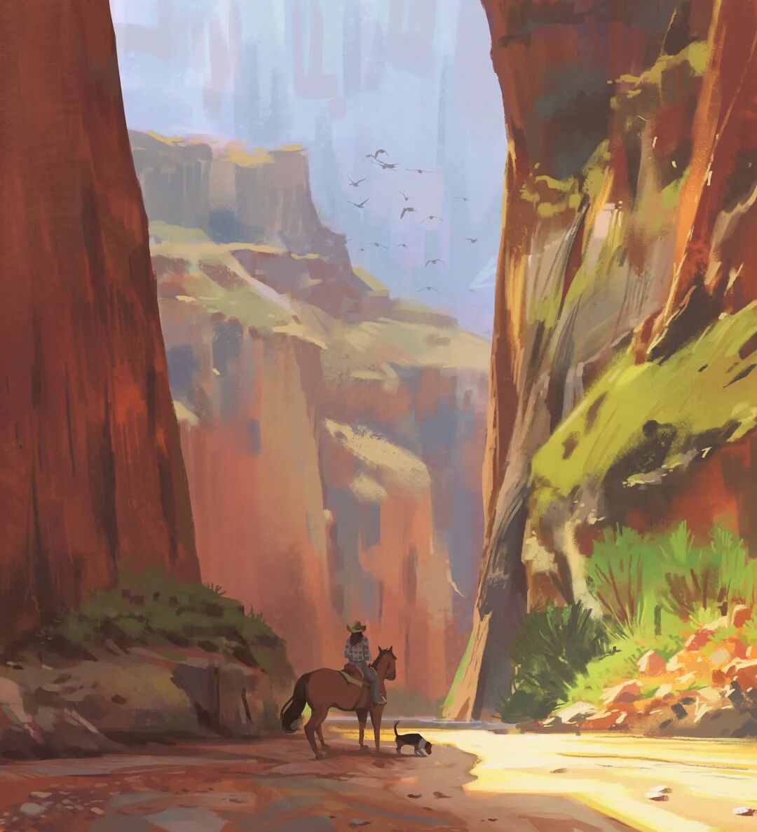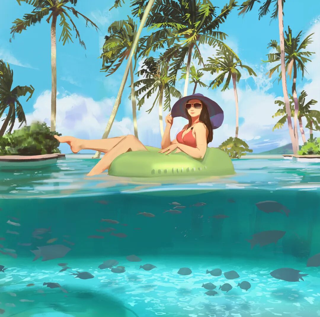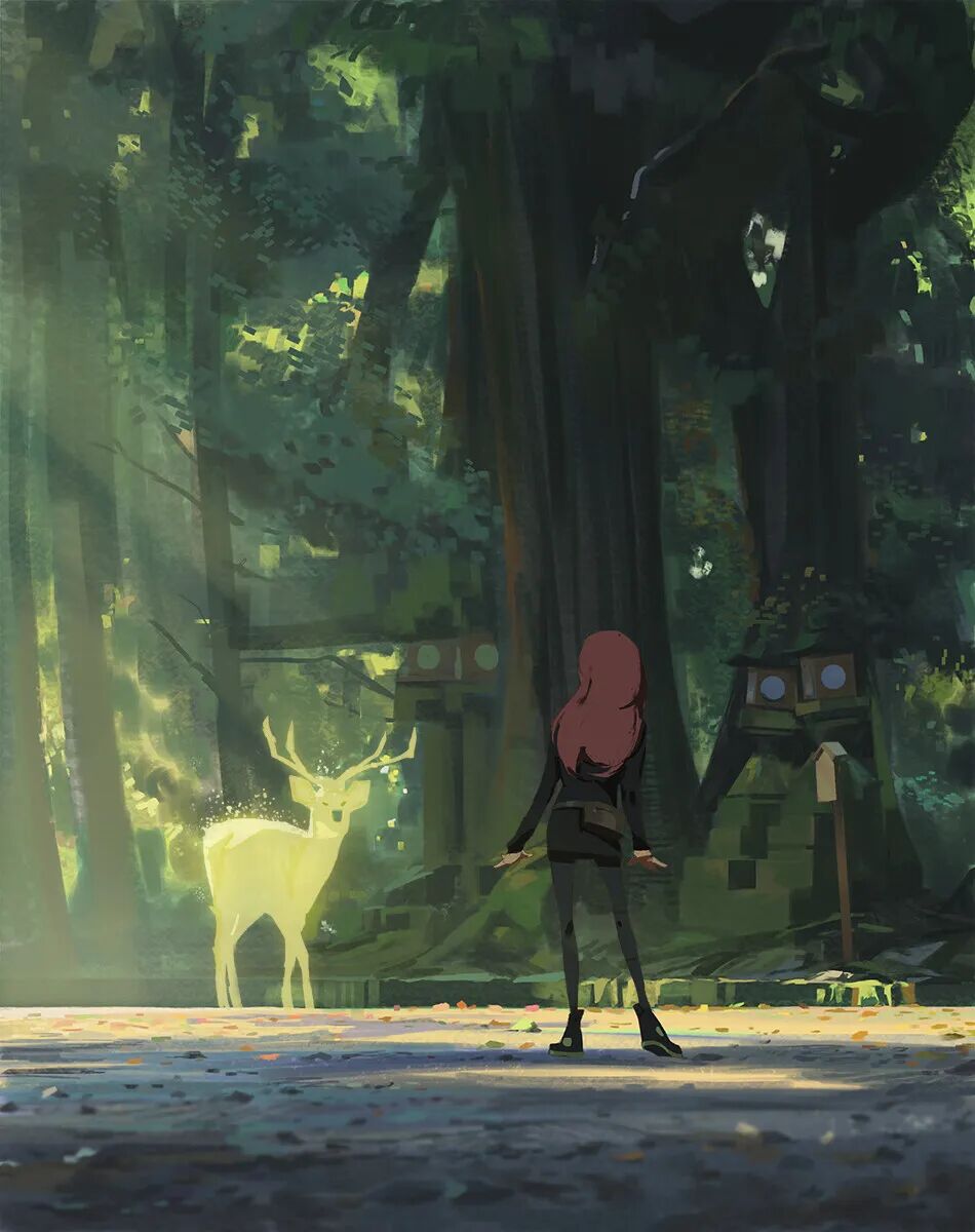 Atey Ghailan也被人称为高产狂魔,他多年来坚持每日速涂,作品辨识度很高,最常见的就是舒适迷人的自然风光,以及他的少女与柯基企鹅系列,作品笔触自然,色彩和谐光感强烈,整体氛围清新又轻松。