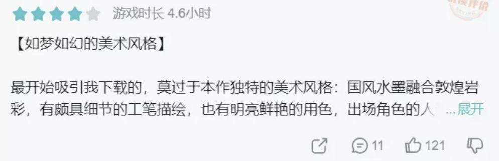 凭借亮眼的美术风格,游戏很快获得了不少玩家的关注和好评。TapTap评论区中,提到画风和画面的评论将近一半。