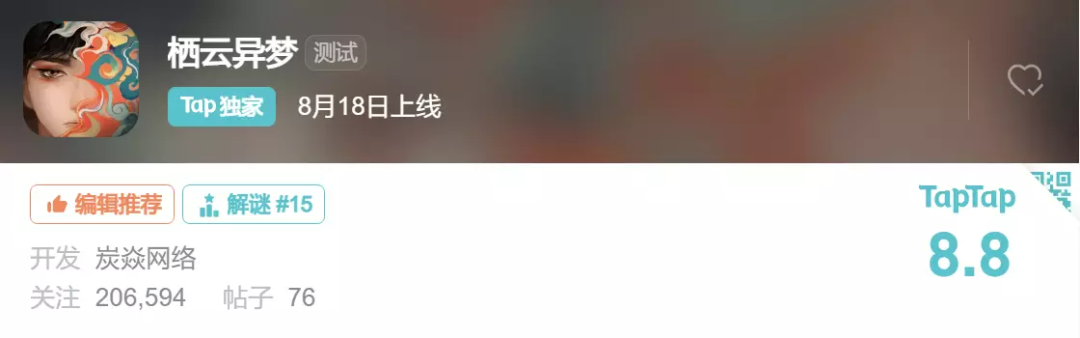确定好题材、玩法、美术风格这些前期工作后,炭焱网络仅用了4个月便完成了《栖云异梦》的开发工作,随后在TapTap上开启游戏预约。