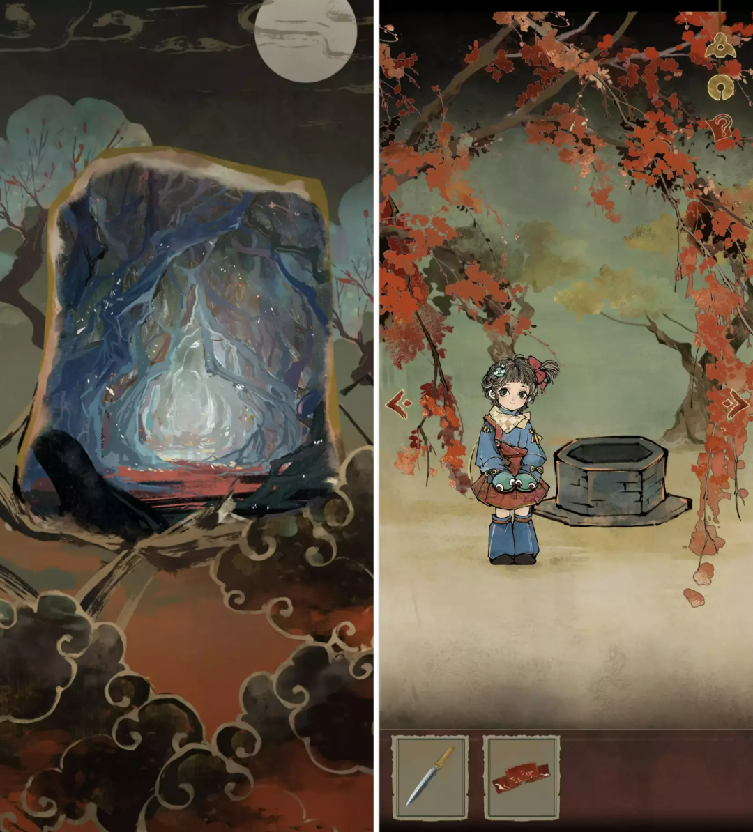 于是今年在3月,沿袭《梦蝶》世界观和美术风格的系列IP续作《栖云异梦》正式立项,团队选择了研发成本较低的点触式解谜作为主要玩法,以水墨画风作为游戏美术风格。