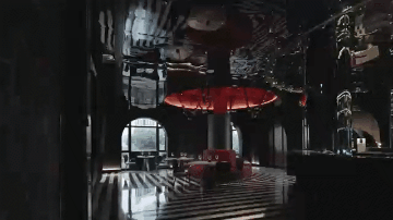 在这场古今海派的故事讲述中,场景结构与氛围营造,构建着空间体验感。从餐厅入口开始,超高动态数字化屏幕的江流山川意象,通过视觉令人沉浸其中,忘却他物,写实了一场幻觉与浪漫的仪式感。