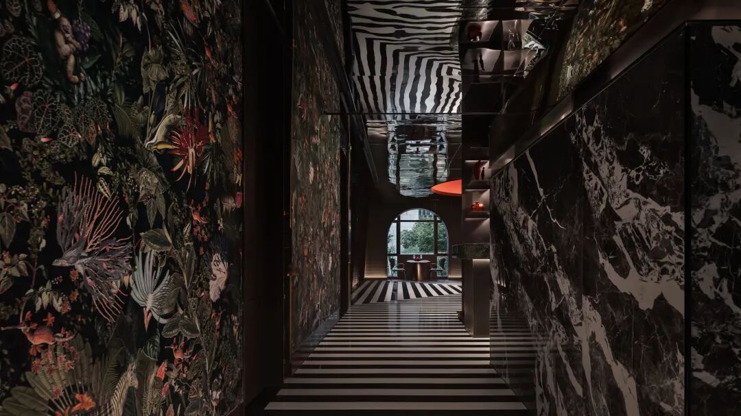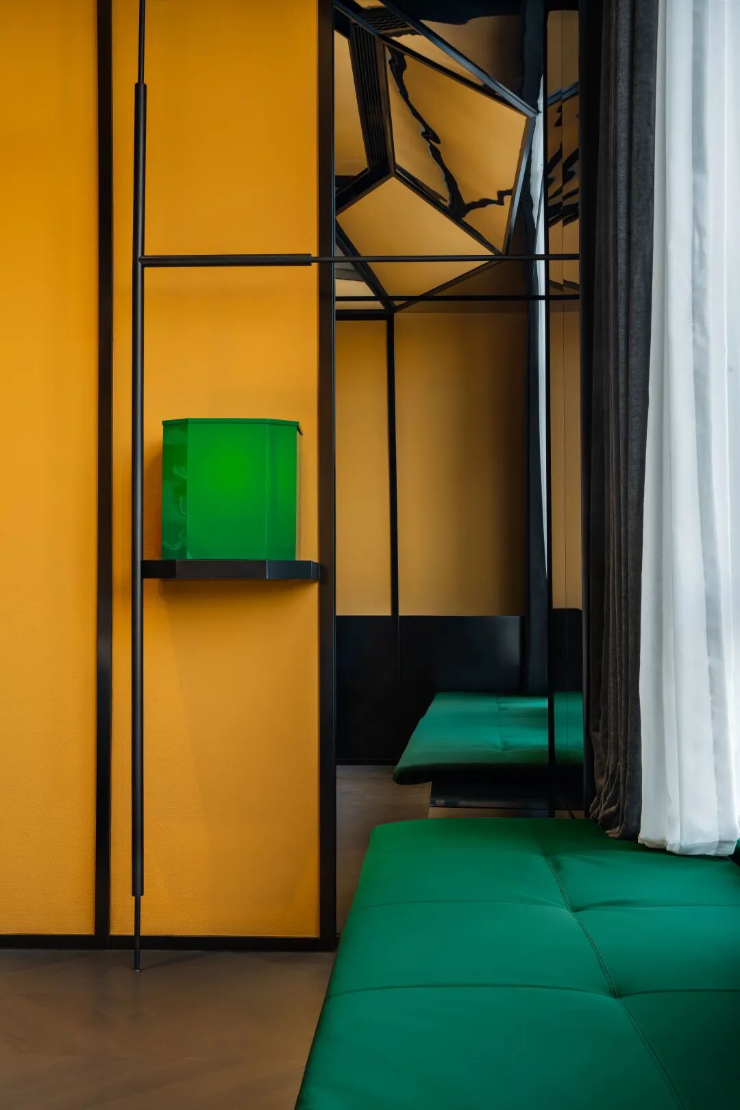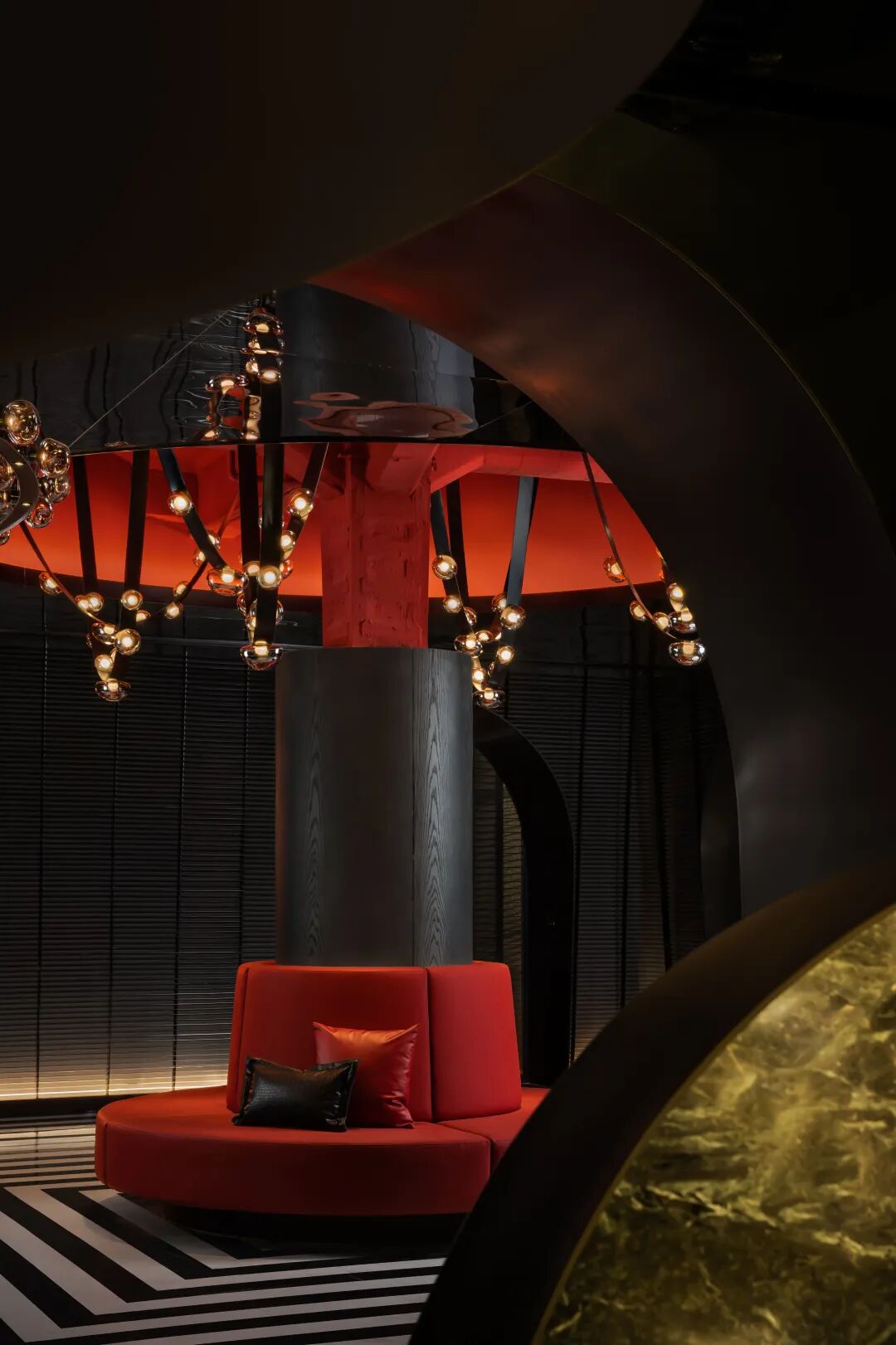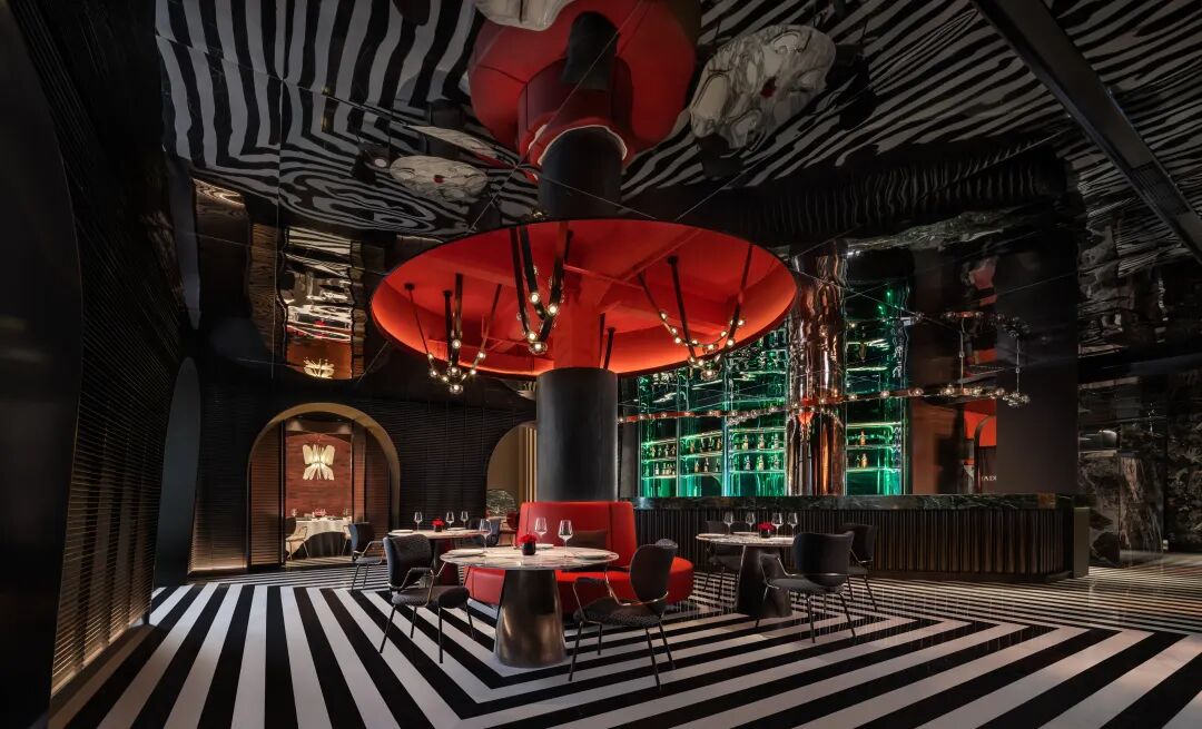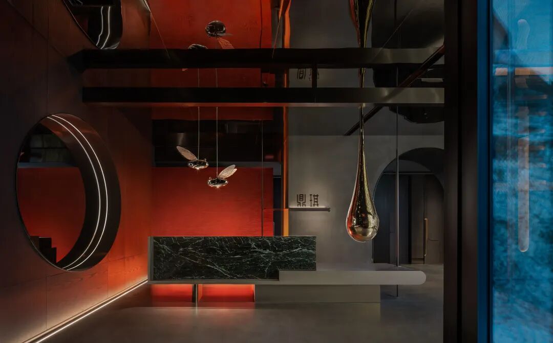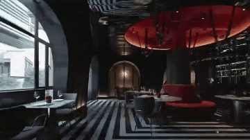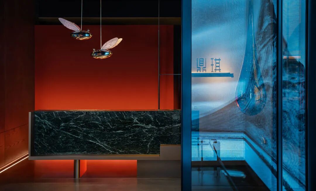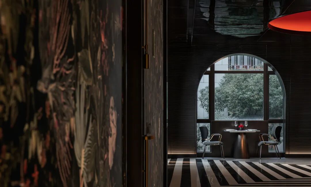 尤其是这座从来不缺异国风情元素餐厅的城市,曾建龙新旧共融,用色彩与材质制造惊喜。从入口步入大厅,具有色彩张力的黑色、红色与绿色,在高低错落的空间结构中交错纵横,仿佛构建了一个“第三空间”。