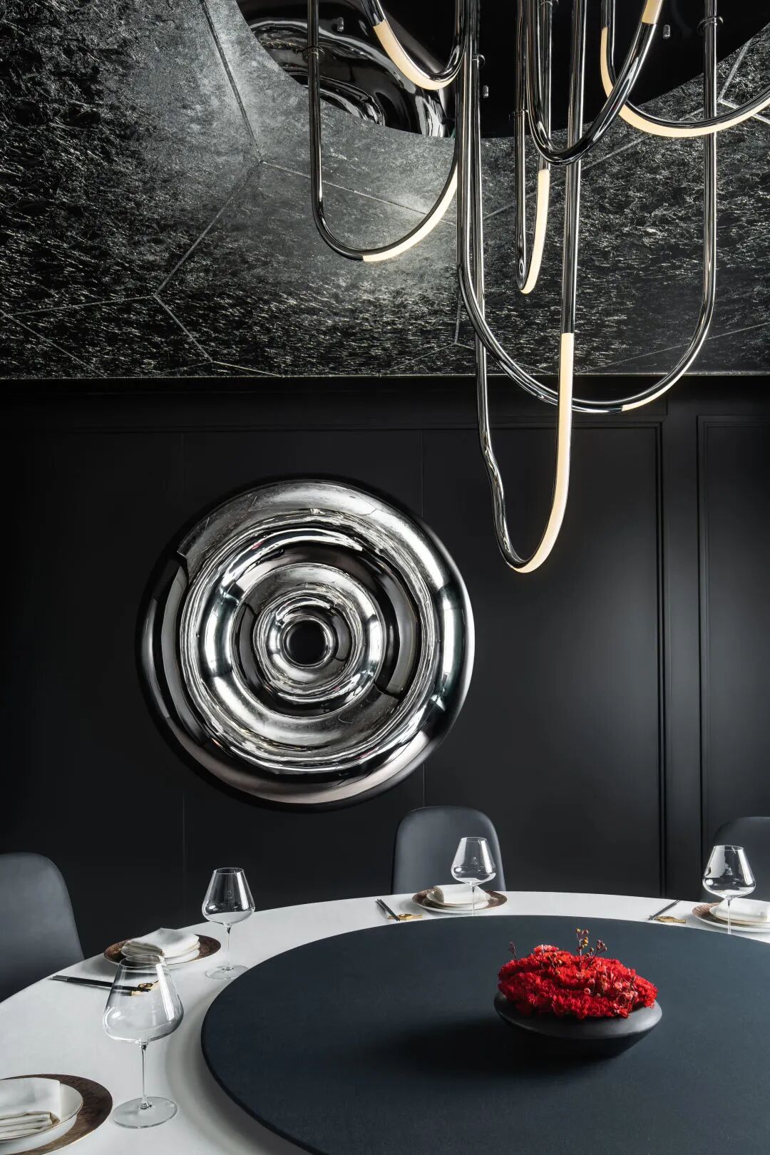既满足平日独立空间的独立使用,也将食客商务、会客、宴请的场域需求,一并实现。空间里金属砖和金属镜面的植入,极大地提升了高级感和未来感。
