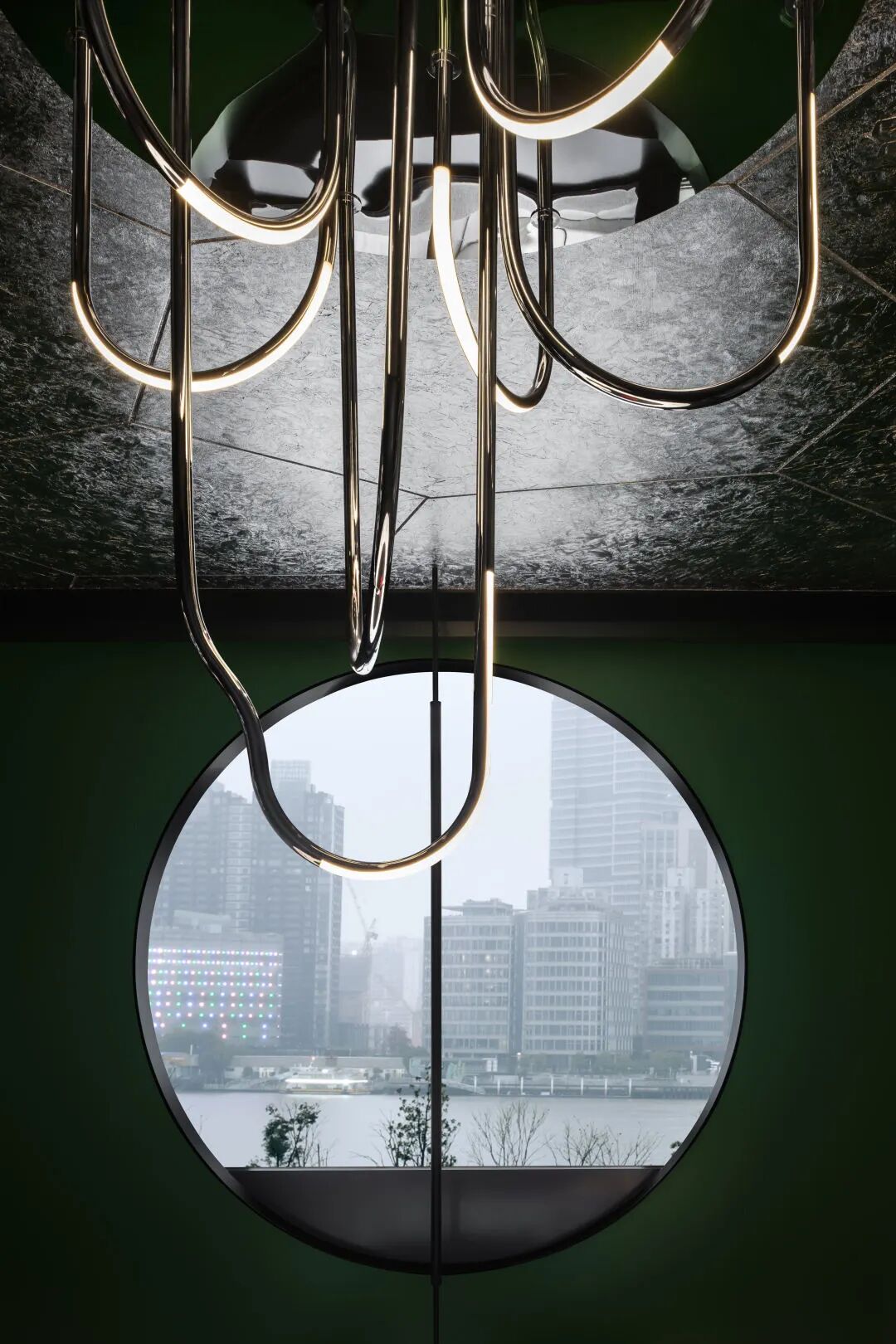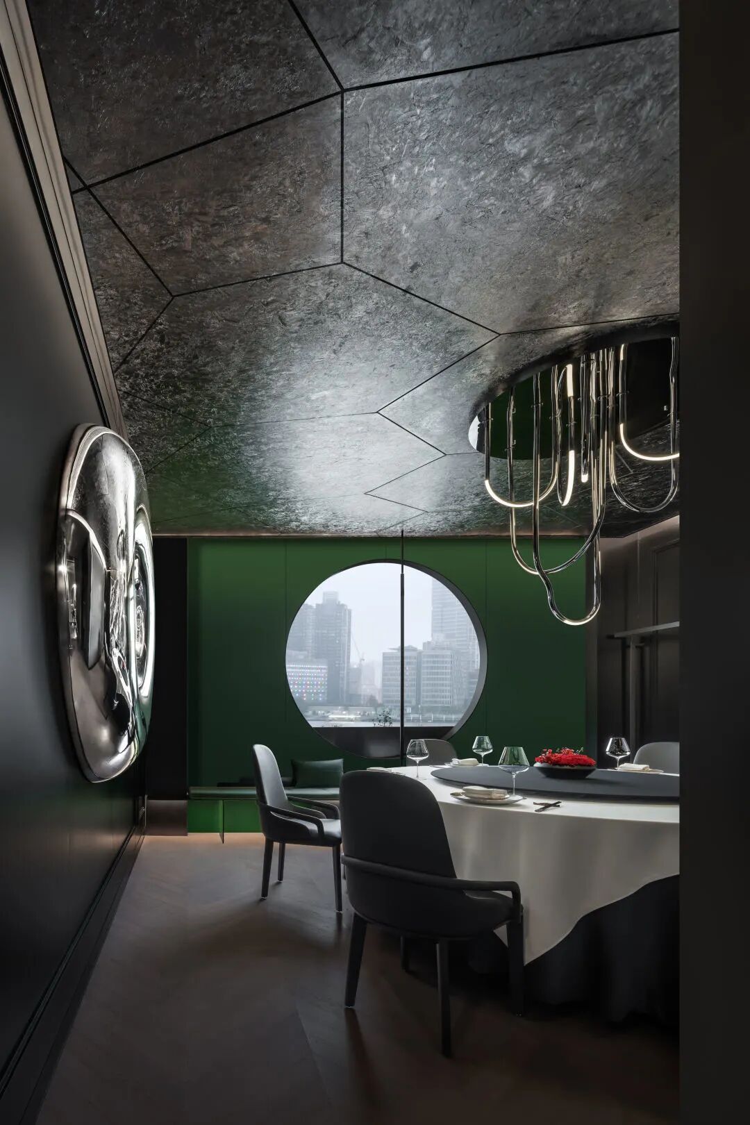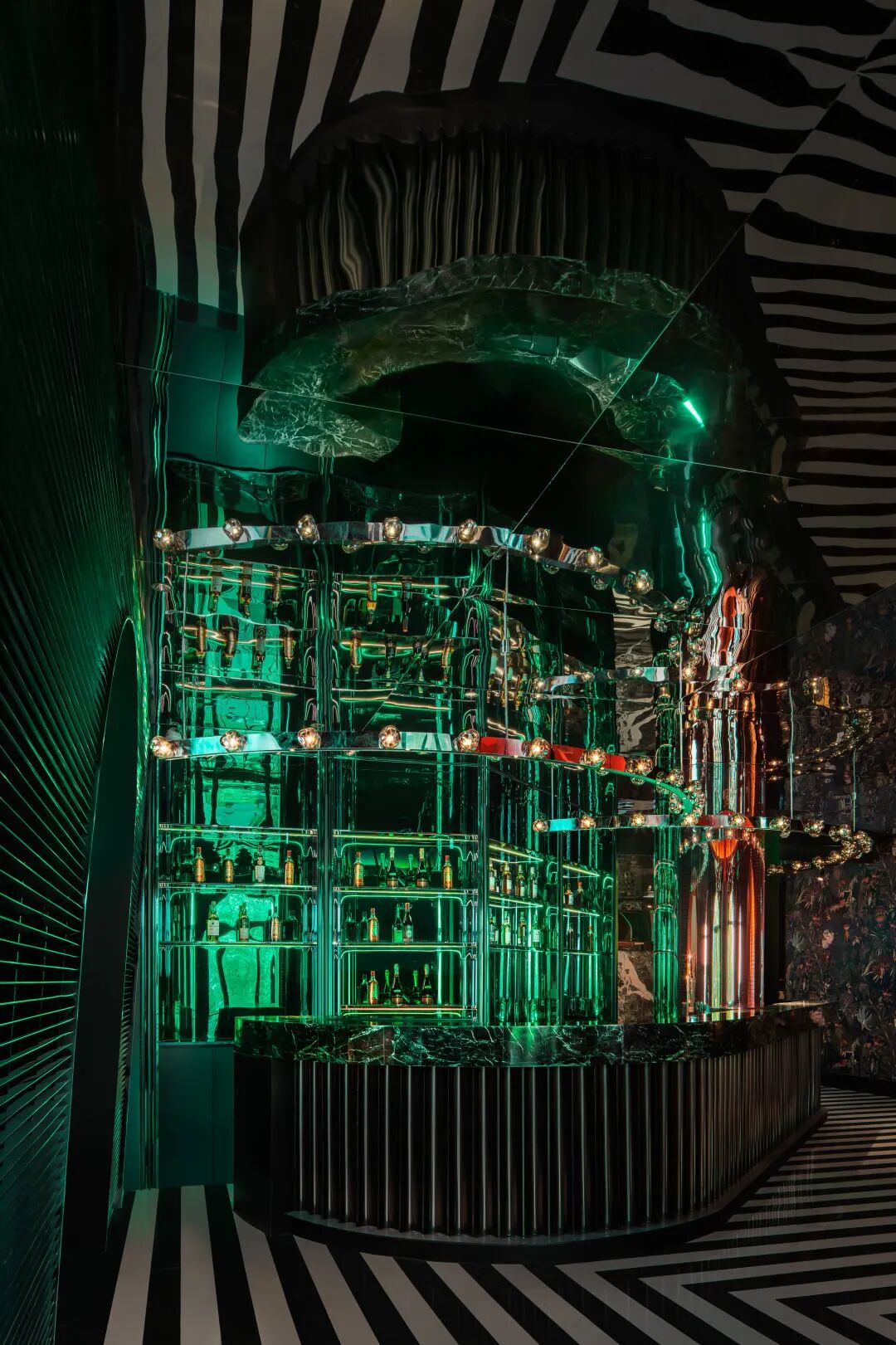 此外,大厅还配有餐酒Bar,一种绿色的、工业的、迷幻的前卫之地。食客可以餐后坐在吧台,点一杯莫吉托或是马天尼,享受微醺时刻。无论从哪个空间出来,餐酒Bar都提供了另一种轻松而愉悦的可能性。