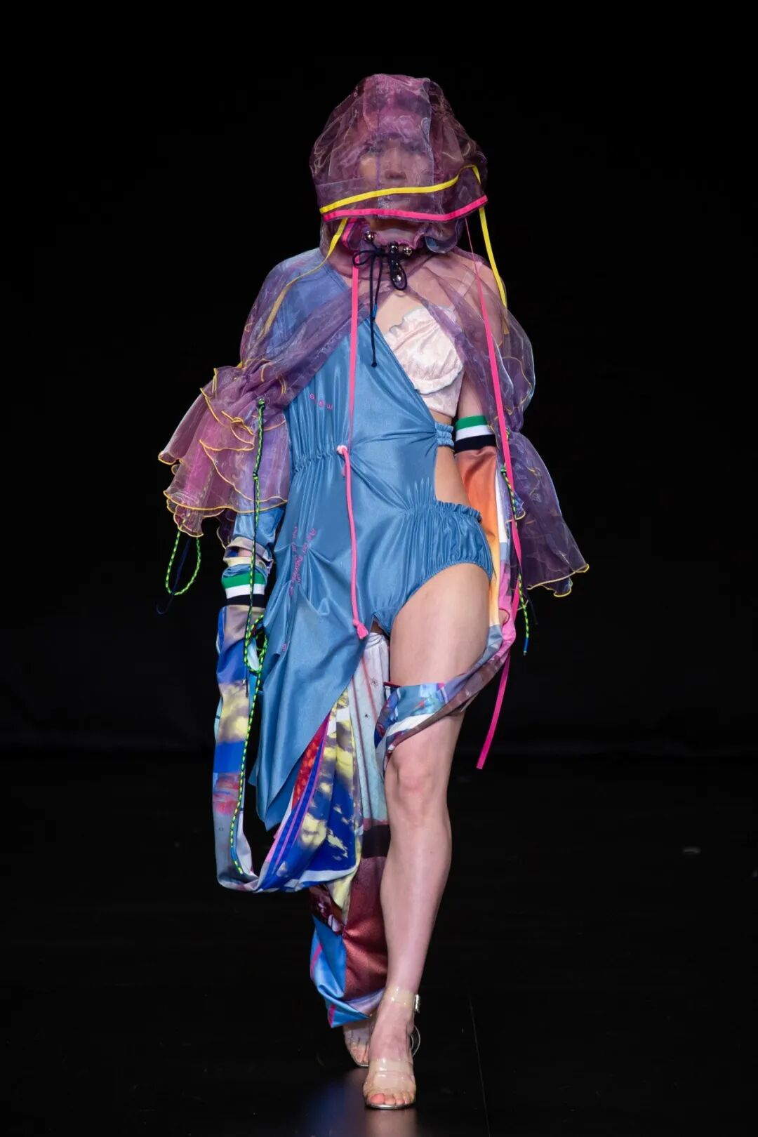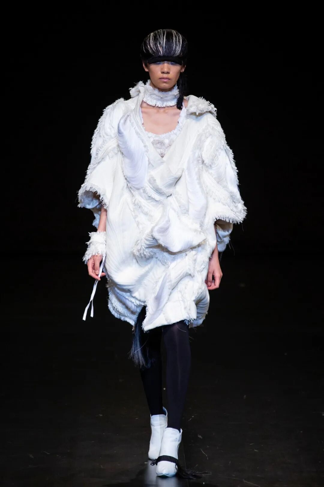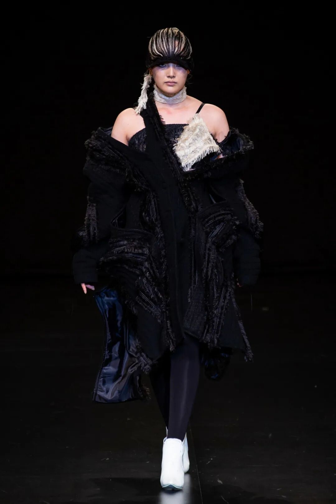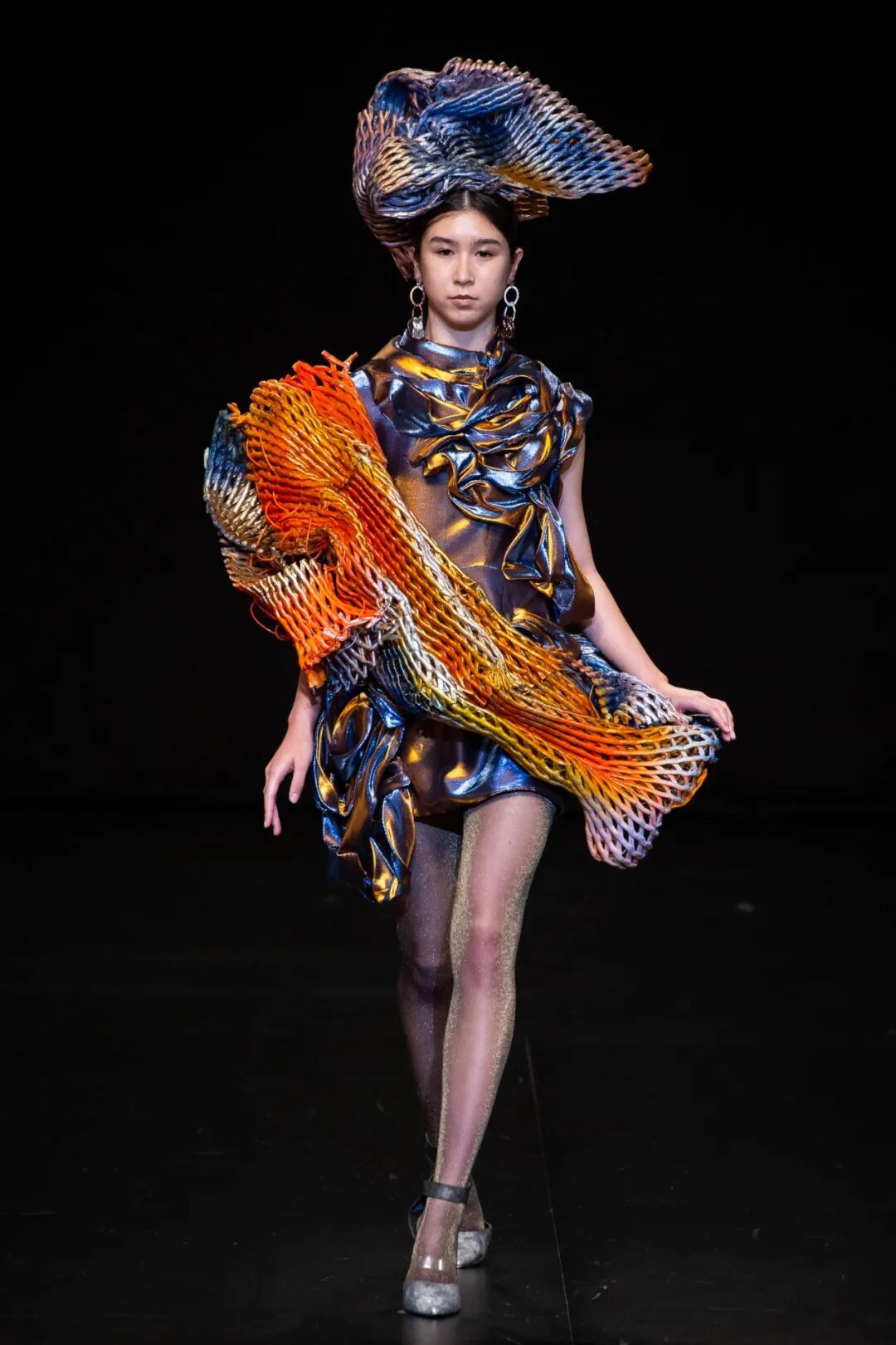 "制作霹雳舞者的服装的时候,看到他跳舞的样子觉得衣服会坏掉。因此,坏掉的衣服会变成什么样呢?"获得二等奖项的设计师小口大輔,以此为灵感制作了此次的参赛时装作品。