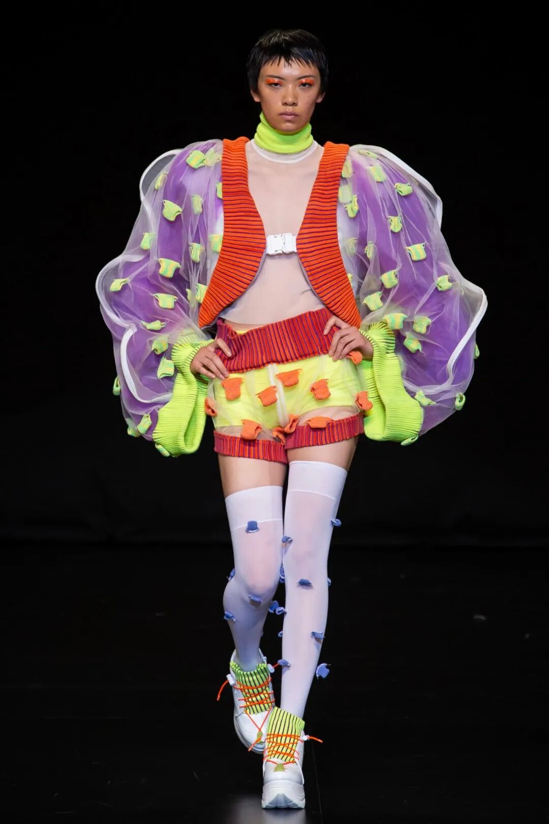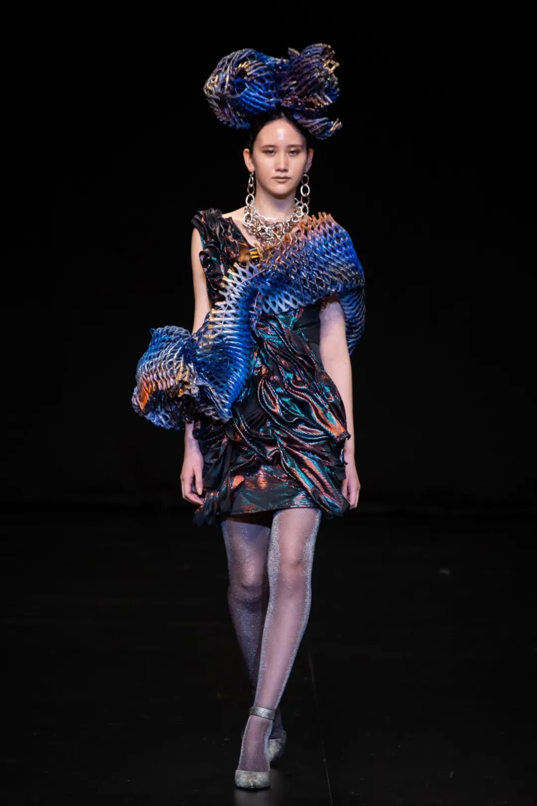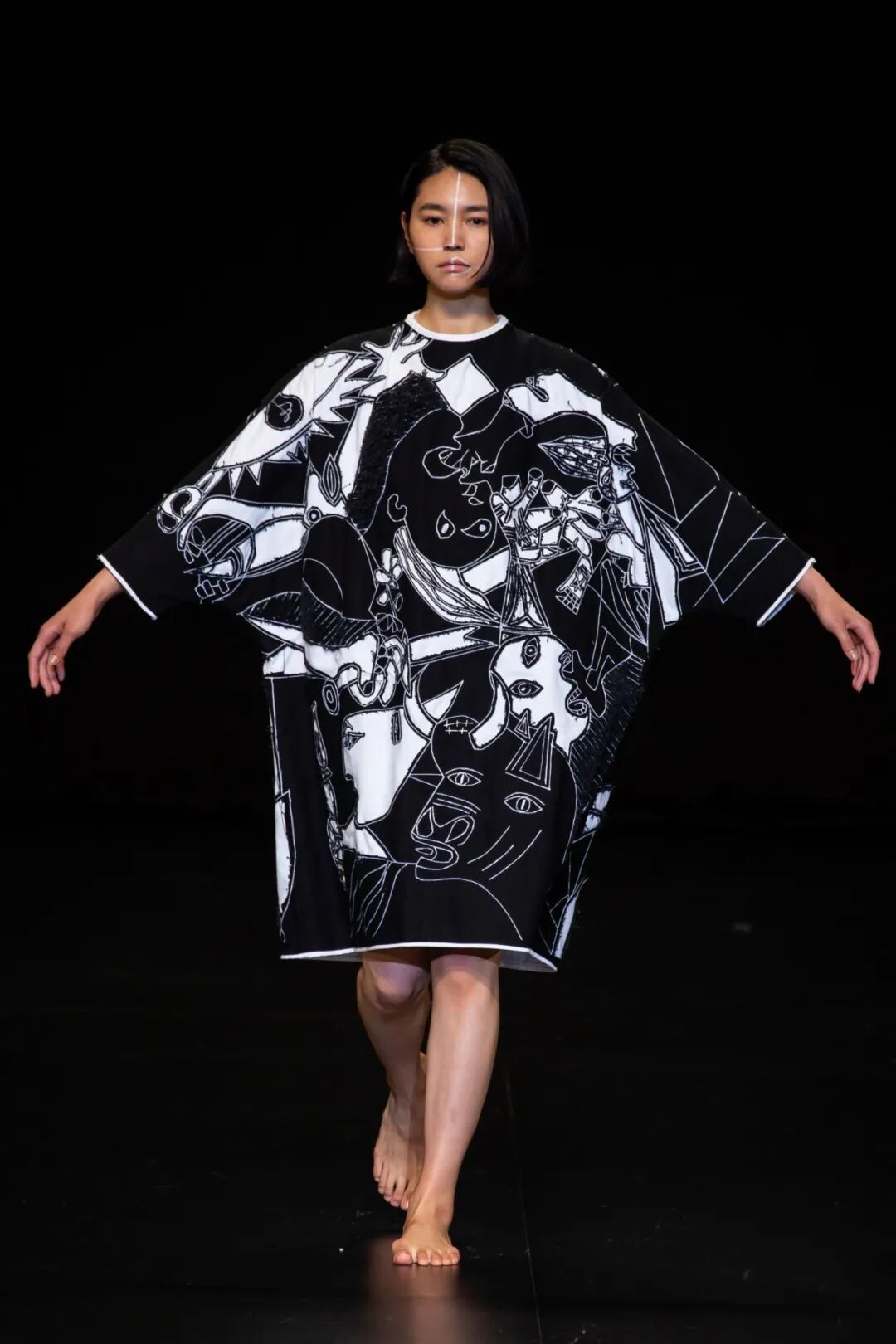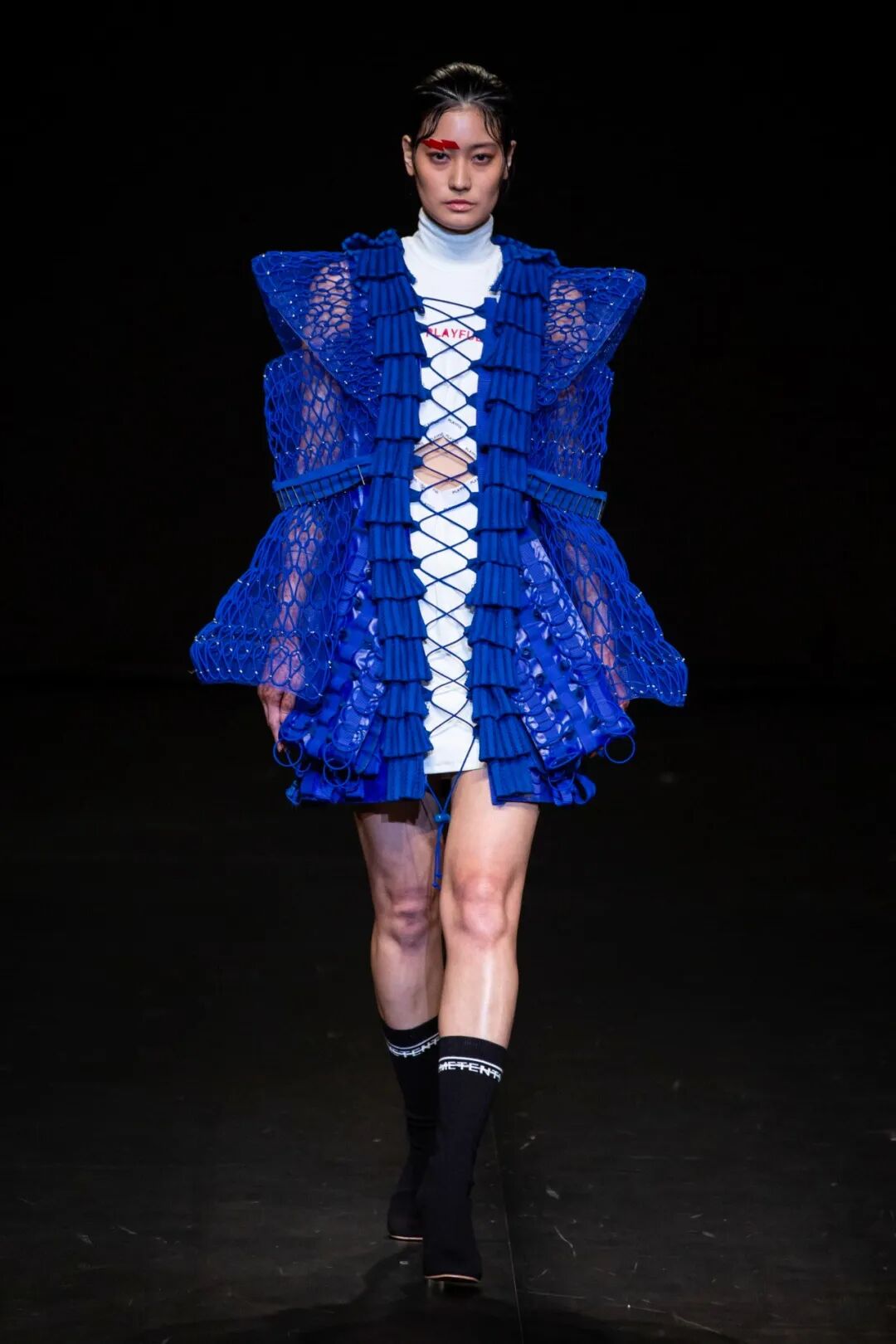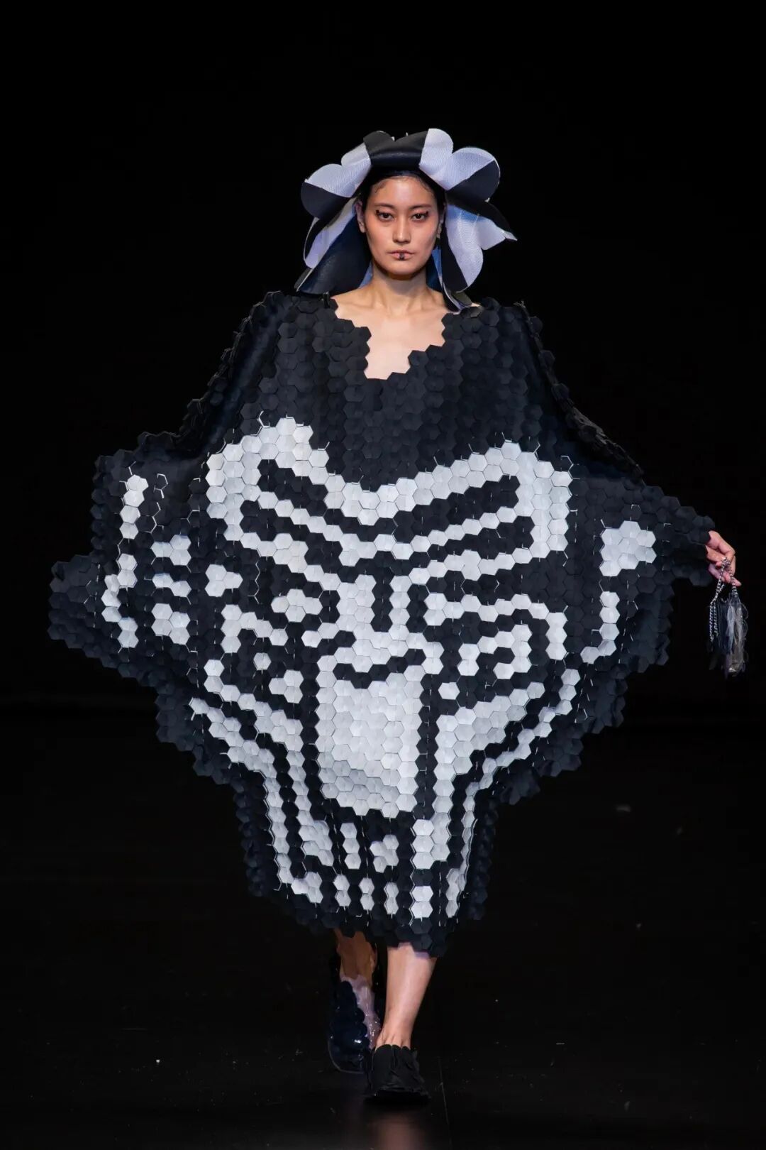 "制作霹雳舞者的服装的时候,看到他跳舞的样子觉得衣服会坏掉。因此,坏掉的衣服会变成什么样呢?"获得二等奖项的设计师小口大輔,以此为灵感制作了此次的参赛时装作品。