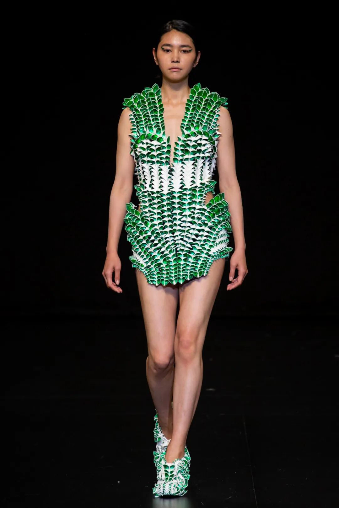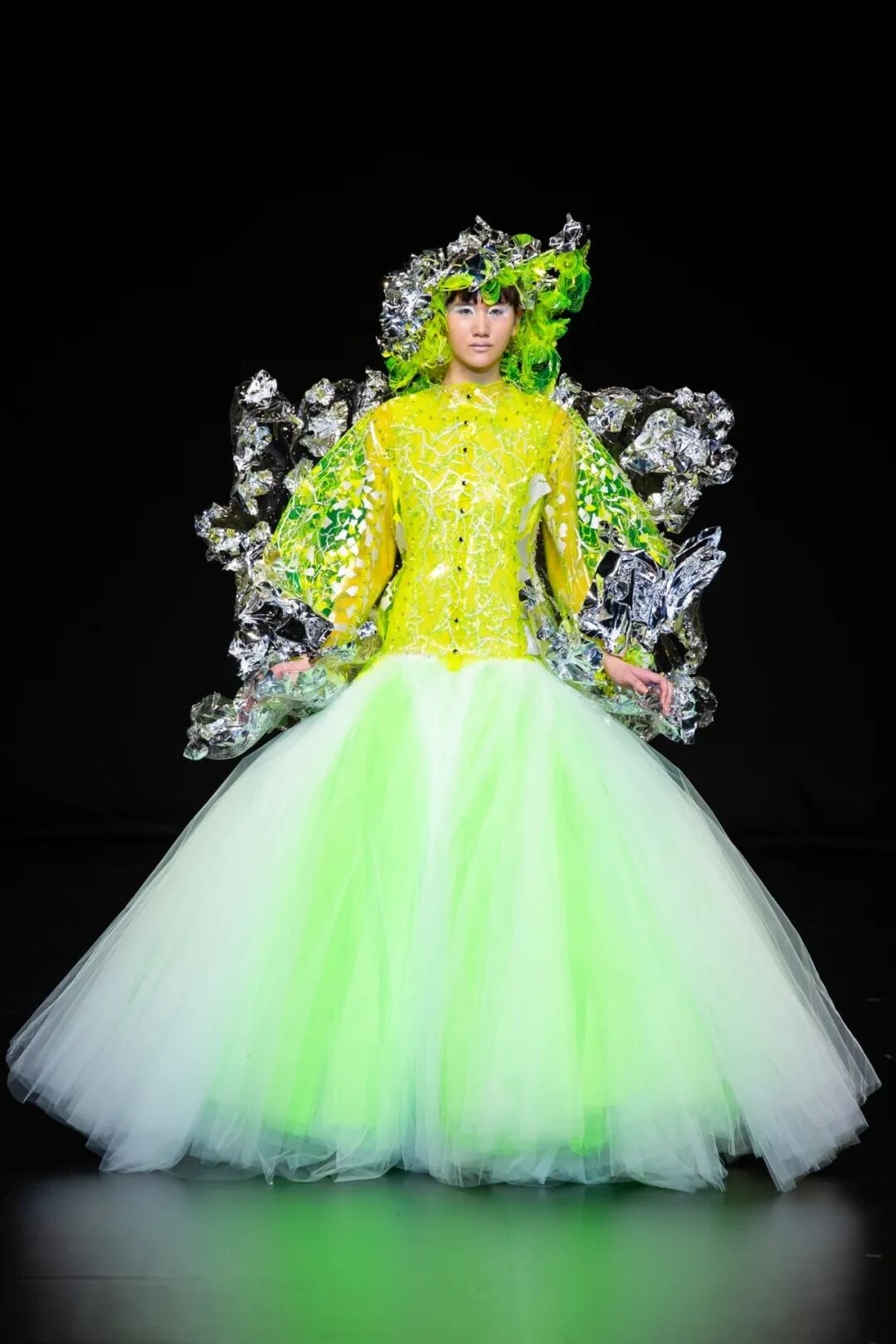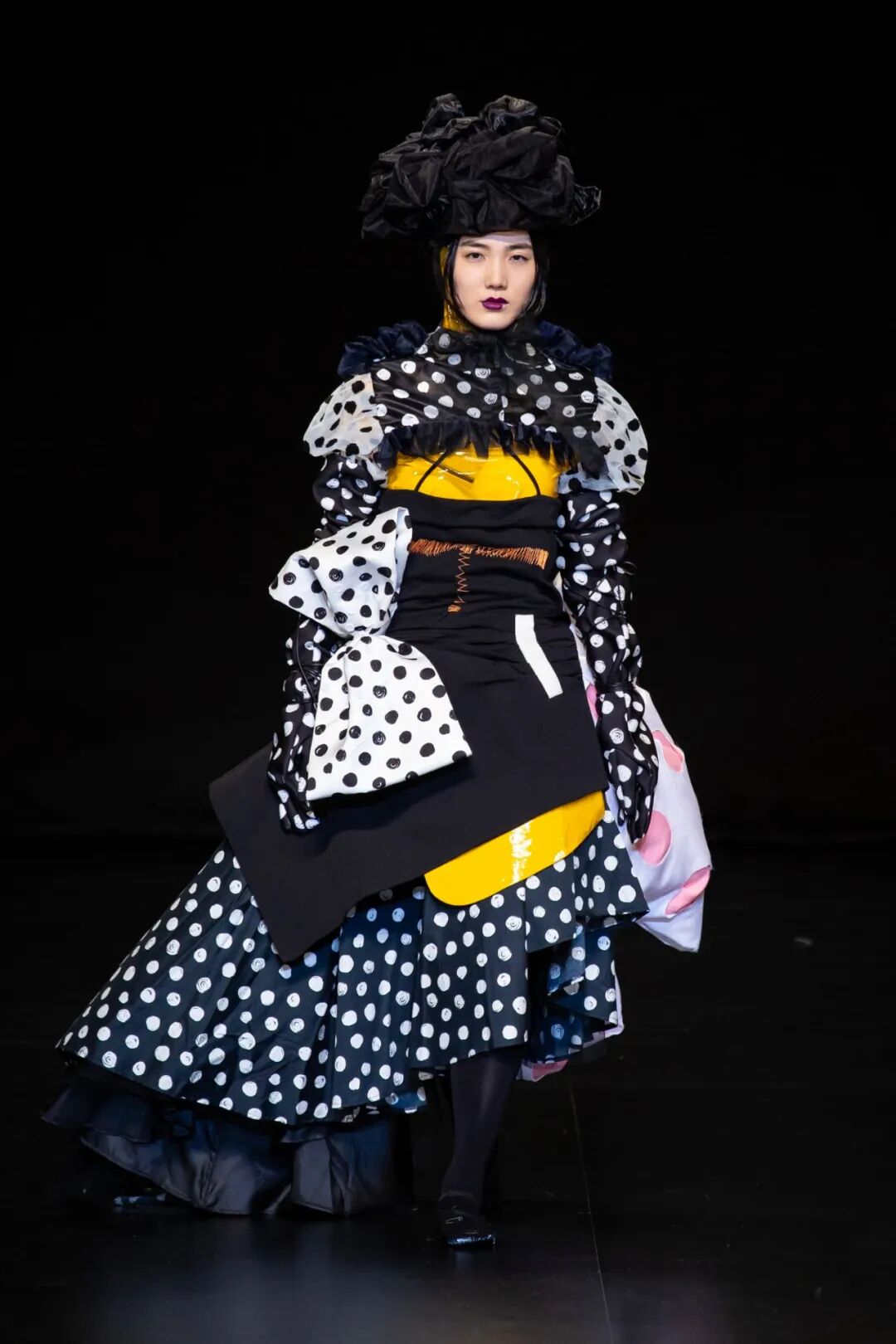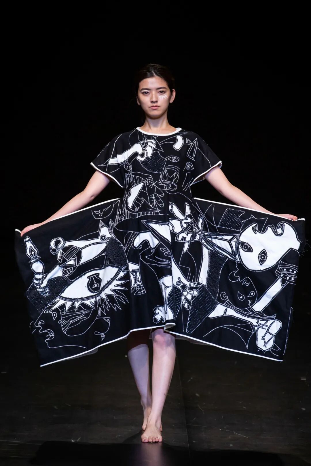 "制作霹雳舞者的服装的时候,看到他跳舞的样子觉得衣服会坏掉。因此,坏掉的衣服会变成什么样呢?"获得二等奖项的设计师小口大輔,以此为灵感制作了此次的参赛时装作品。