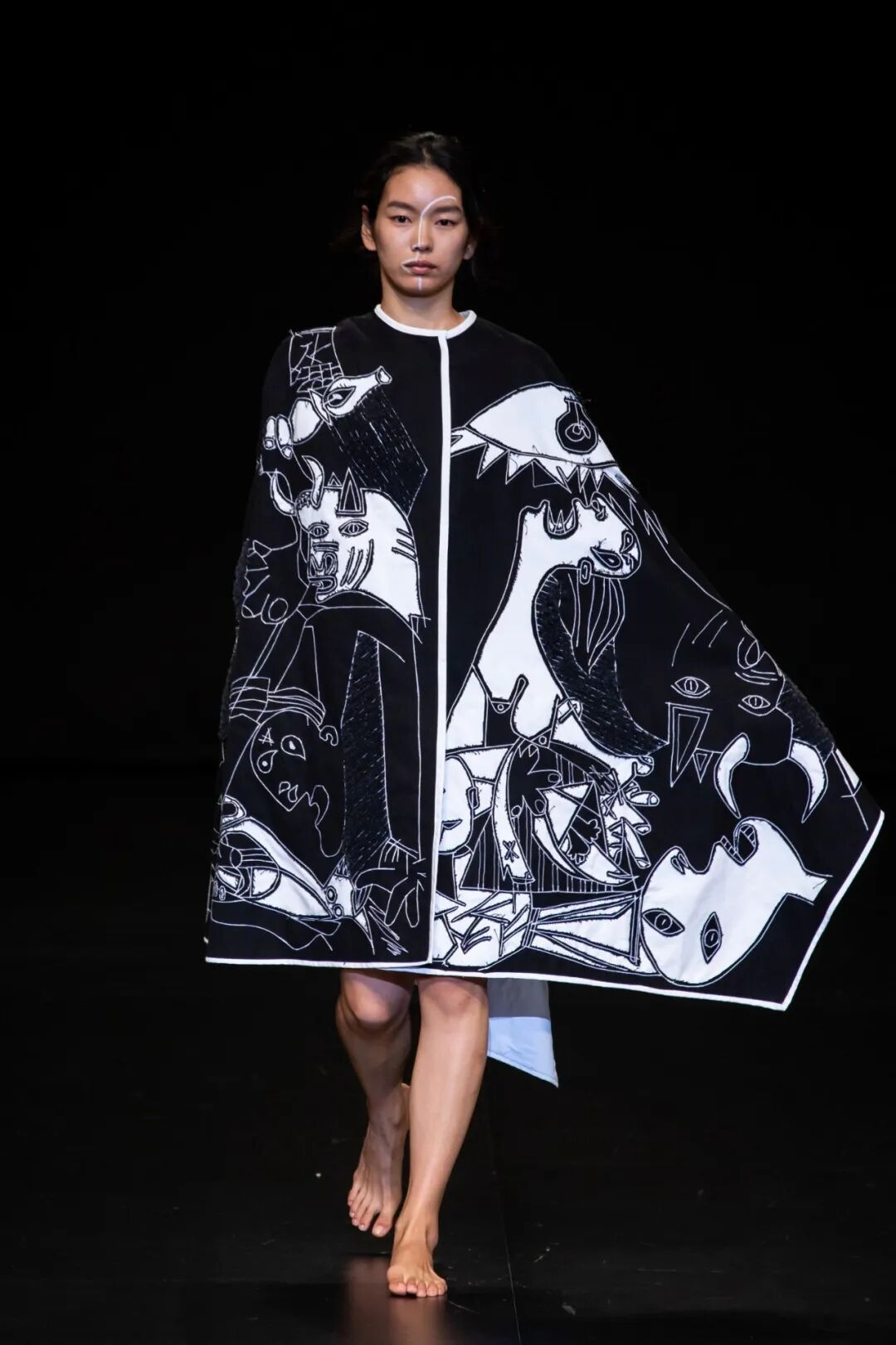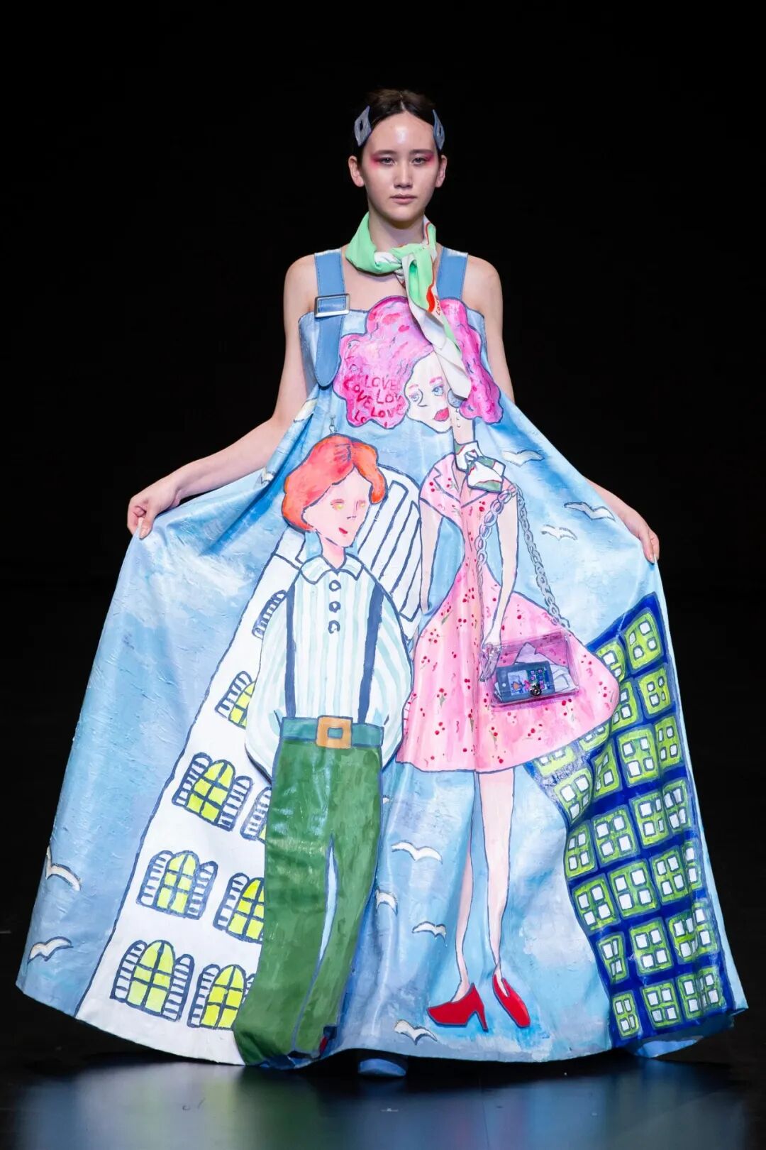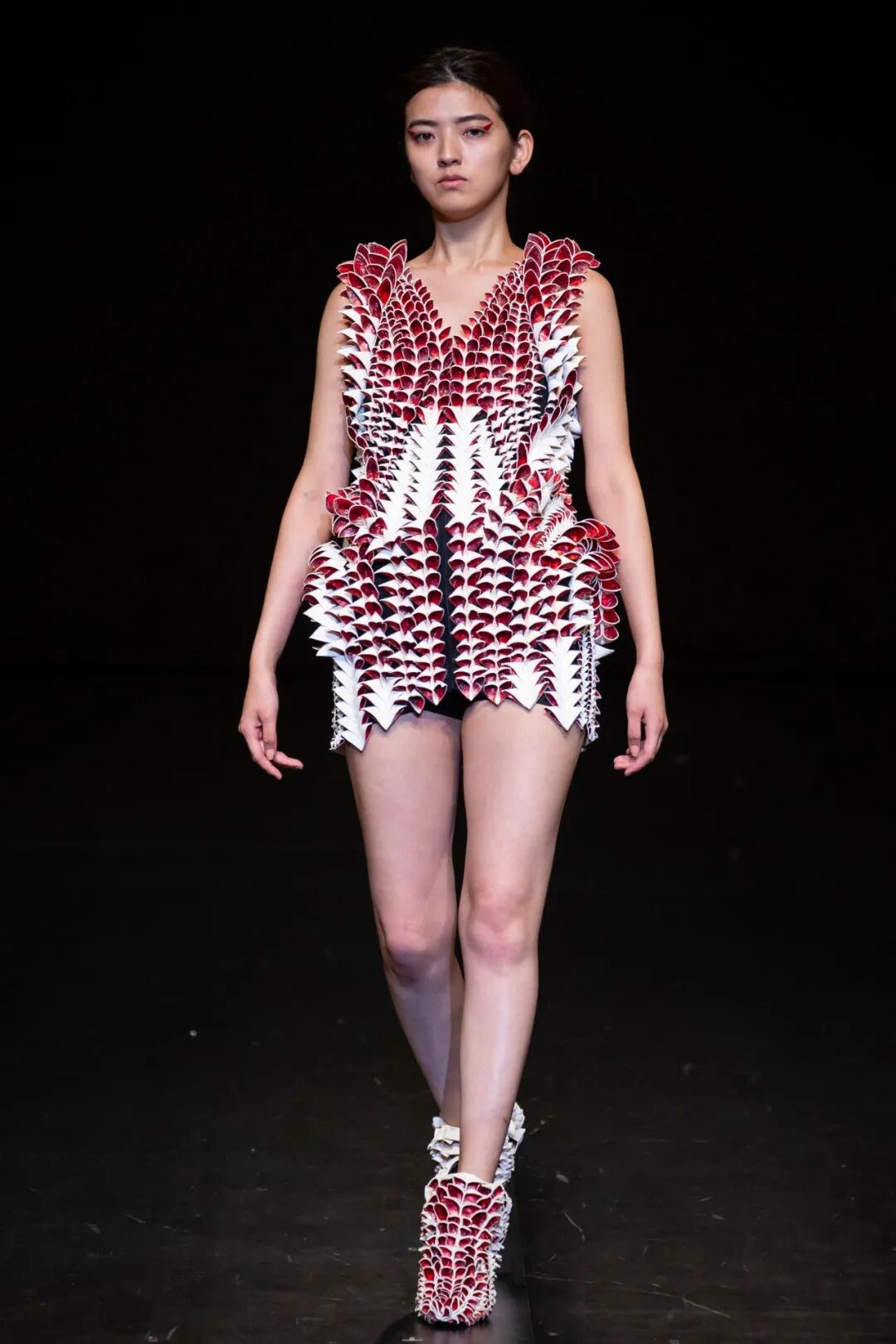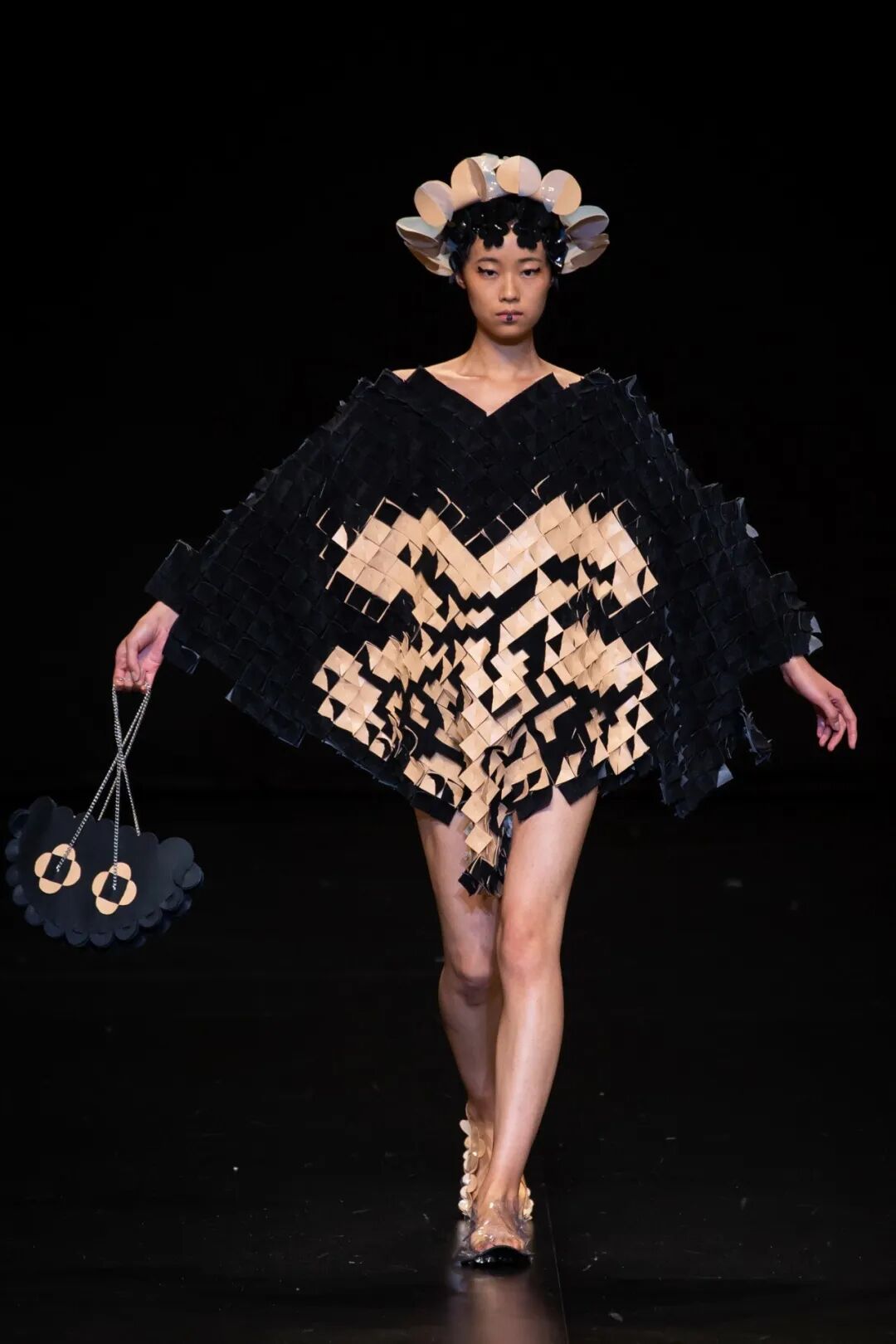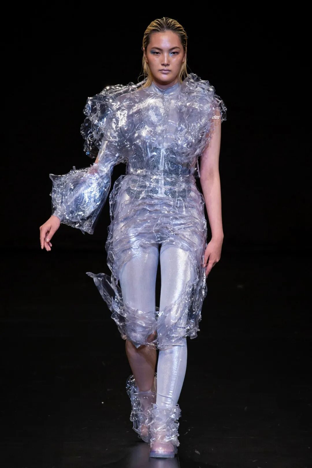 "制作霹雳舞者的服装的时候,看到他跳舞的样子觉得衣服会坏掉。因此,坏掉的衣服会变成什么样呢?"获得二等奖项的设计师小口大輔,以此为灵感制作了此次的参赛时装作品。