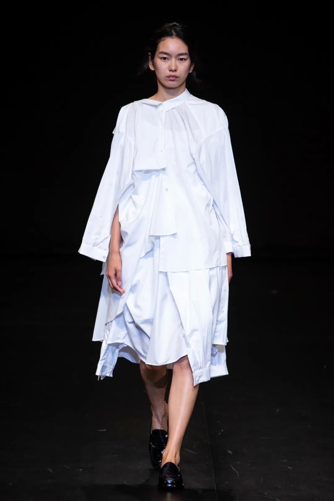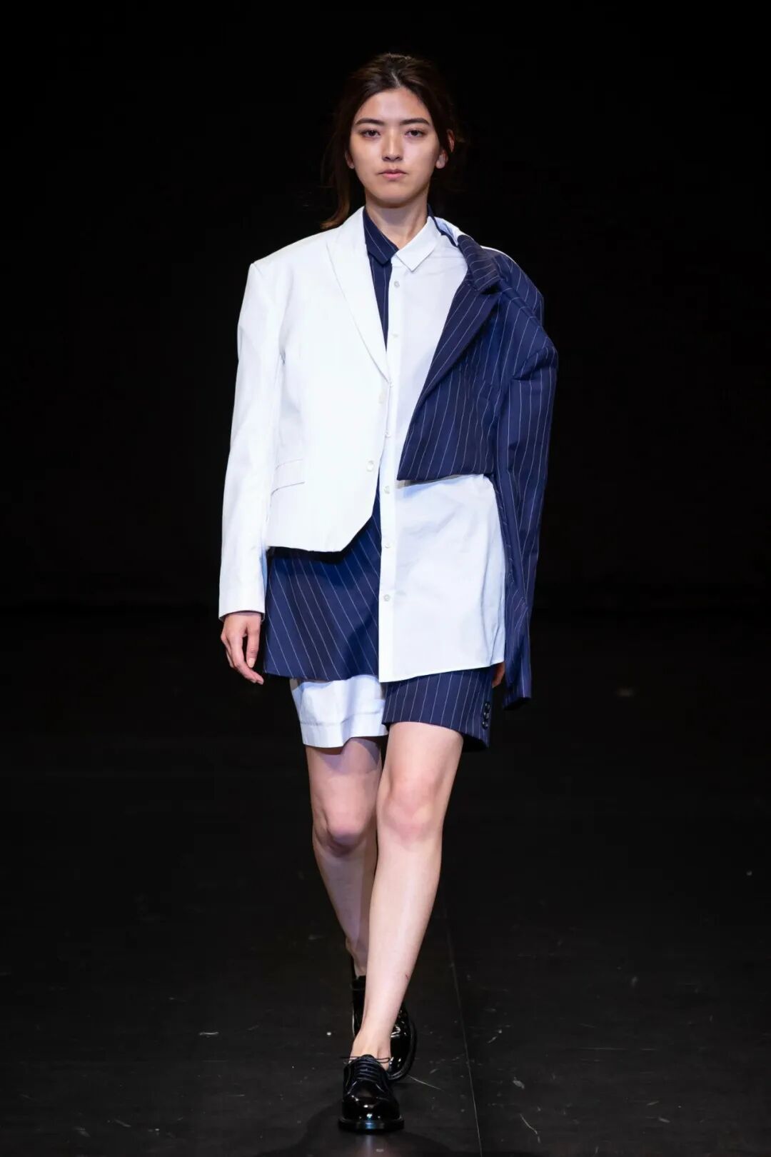 不仅仅是修复,而是活用物品的个性,设计师试图表现出在激烈运动中瞬间变化的衣服。应用了独特的剪裁技术,表现出了联想到瞬间运动量极限的垂边感。