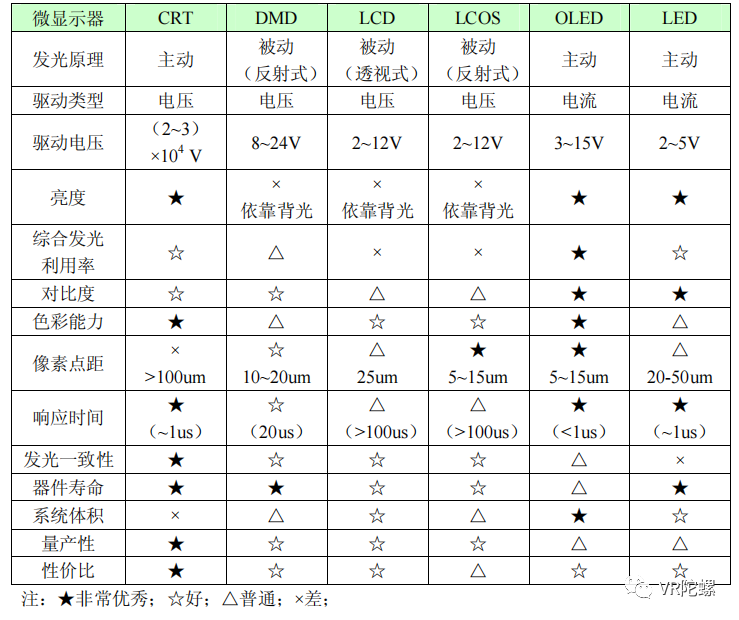 根据季渊博士《超还原硅基有机发光微显示器研究》的研究论文以及目前行业公认的信息显示,Micro LED 作为微显示器类型的杰出代表,它在亮度、对比度、相应时间、器件寿命方面拥有非常优秀的性能。