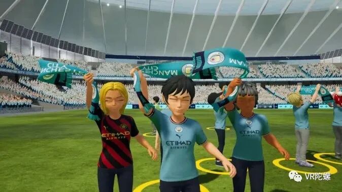 在演示视频中,出现了一个再现曼城主场——伊蒂哈德球场的元宇宙虚拟空间。用户以虚拟化身的身份进入虚拟伊蒂哈德球场,享受与其他用户一起观看足球比赛的氛围。