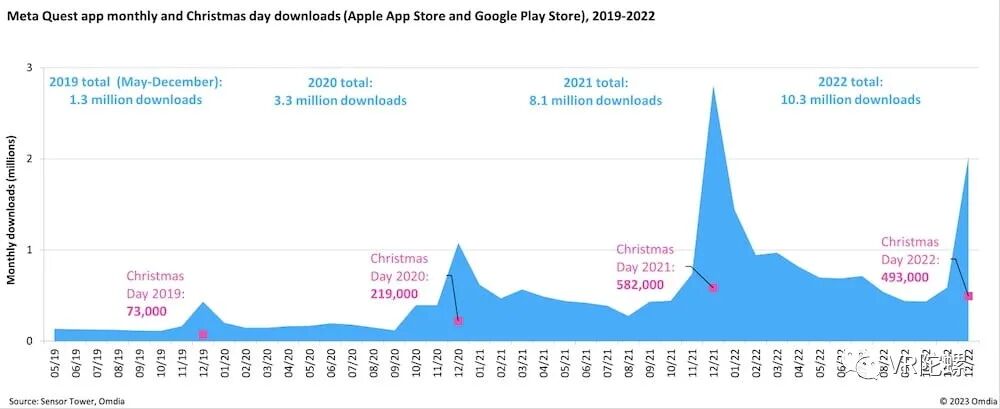 其他一些数据指出,Quest 2在2022年圣诞期间的销量要略低于2021年,但全年销量仍好于上一年。
