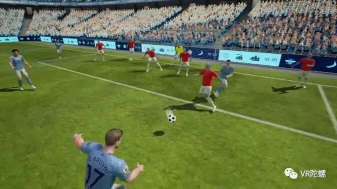 比赛里的高光时刻也会转化为3DCG,如球门前的激烈攻防。除了能从任何角度观看外,用户还可以通过球员的第一人称视角体验传球和射门的过程。