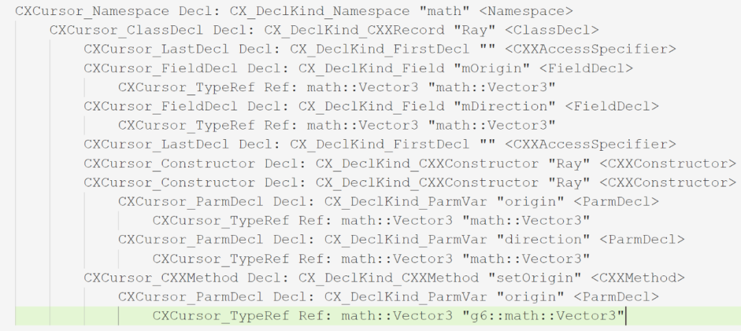 实际的工程使用中, 我们需要处理的类可能分散在多个不同的.h文件中,比如Vector3被定义在vector3.h中,而Ray被定义在ray.h中,实际的处理过程, 再加上一些前置声明,我们可能会在不同的Cursor上处理这些相关的内容,这对于多Pass的处理,或者一些自定义的数据注入(比如后续会介绍的MetaAttribute支持),都会是一个障碍,所以虽然ClangSharp有提供对比原始的callback好用很多的HighLevel支持,我们还是需要一层自己的c# structured AST组织,方便刚才提到的几点: