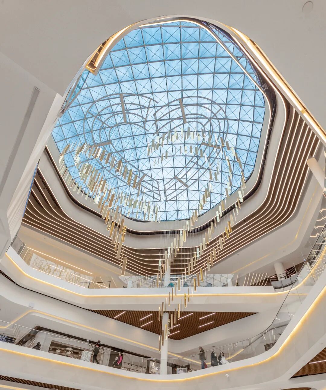项目翻新预算为5000万欧元,改造翻新后的购物中心为两层,拥有247家零售店,57家餐厅以及18间独立影院房间。设计通过现代化的方式引入自然光,为购物中心内部营造积极向上的氛围,并通过优雅简约的线条以及灯光设计为室内打造多元氛围。